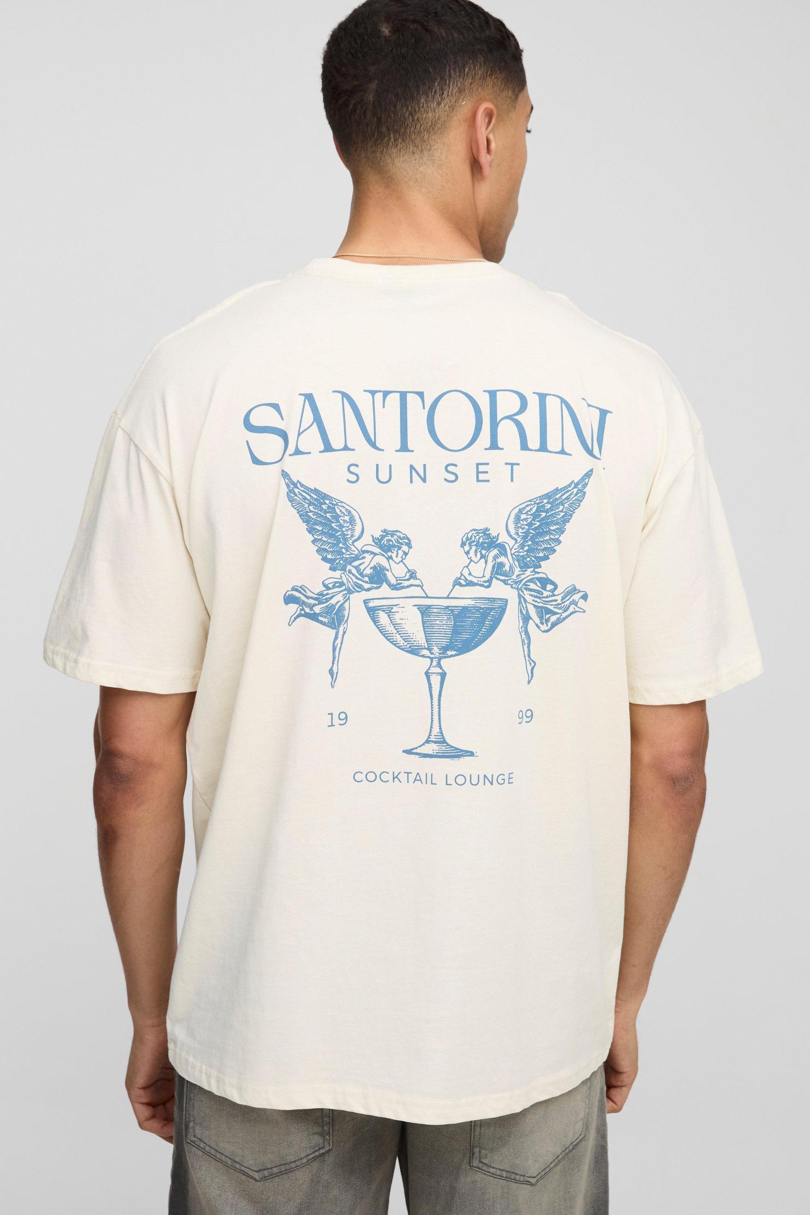 Oversized Santorini Sunset Renaissance T-Shirt | boohooMAN USA