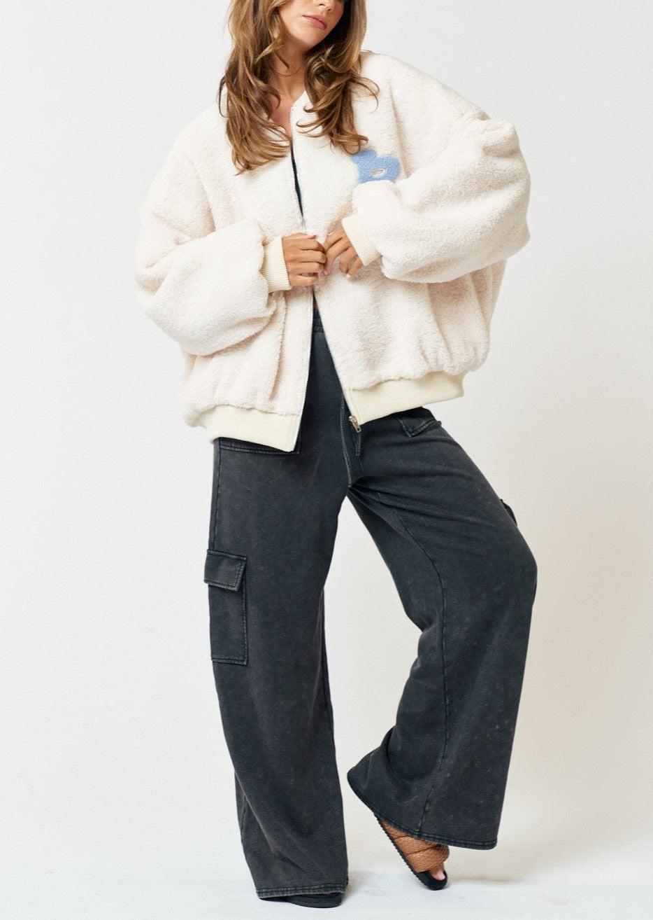 **Relaxed Fit**This Oversized Sherpa Baseball Jumper is the perfect winter wardrobe staple. Featuring a relaxed fit with a unique 'B' letter zip up design, its Sherpa material provides unparalleled warmth and comfort. Stay cozy and stylish this season with this Jumper.