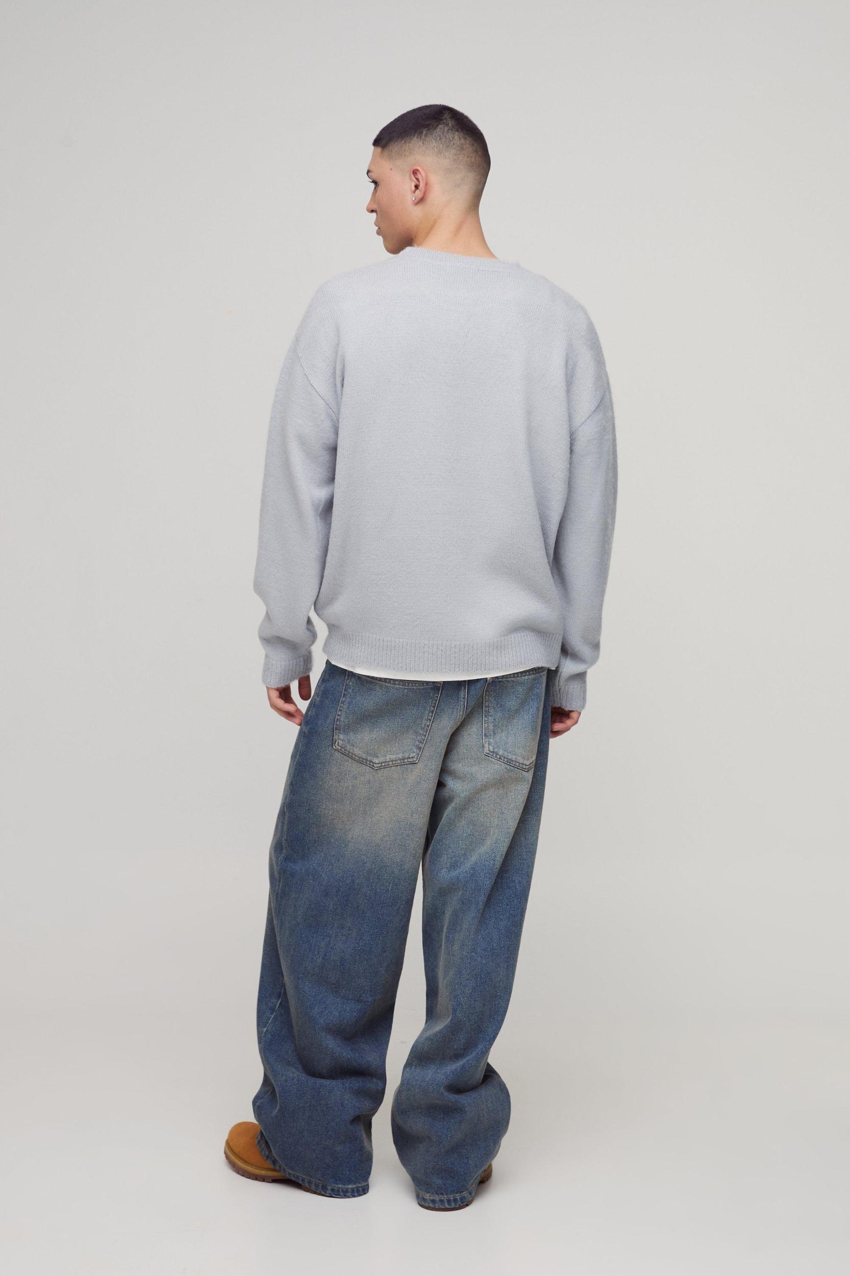 Keep warm while you play it cool with BoohooMAN jumpers and cardigans. If you like a cosy top layer when you're outside hanging with the lads, there's nothing like a new sweater with a fresh lining of soft fleece. On the other hand, if you've been hitting the upper body circuits lately you might prefer to show off your hard work with a muscle fit rib knit. There are plenty of style options when it comes to your finishing layer. Get instant street cred by combining a stylish knitted sweater and cargos, or wear a slim fit cardy and tapered pants for instant office suave. From crew necks to turtlenecks, our men's jumpers will keep you warm while you're busy being sizzling hot.Style: JumperDesign: FluffyFabric: AcrylicLength: RegularNeckline: CrewSleeve Length: Long Sleeve