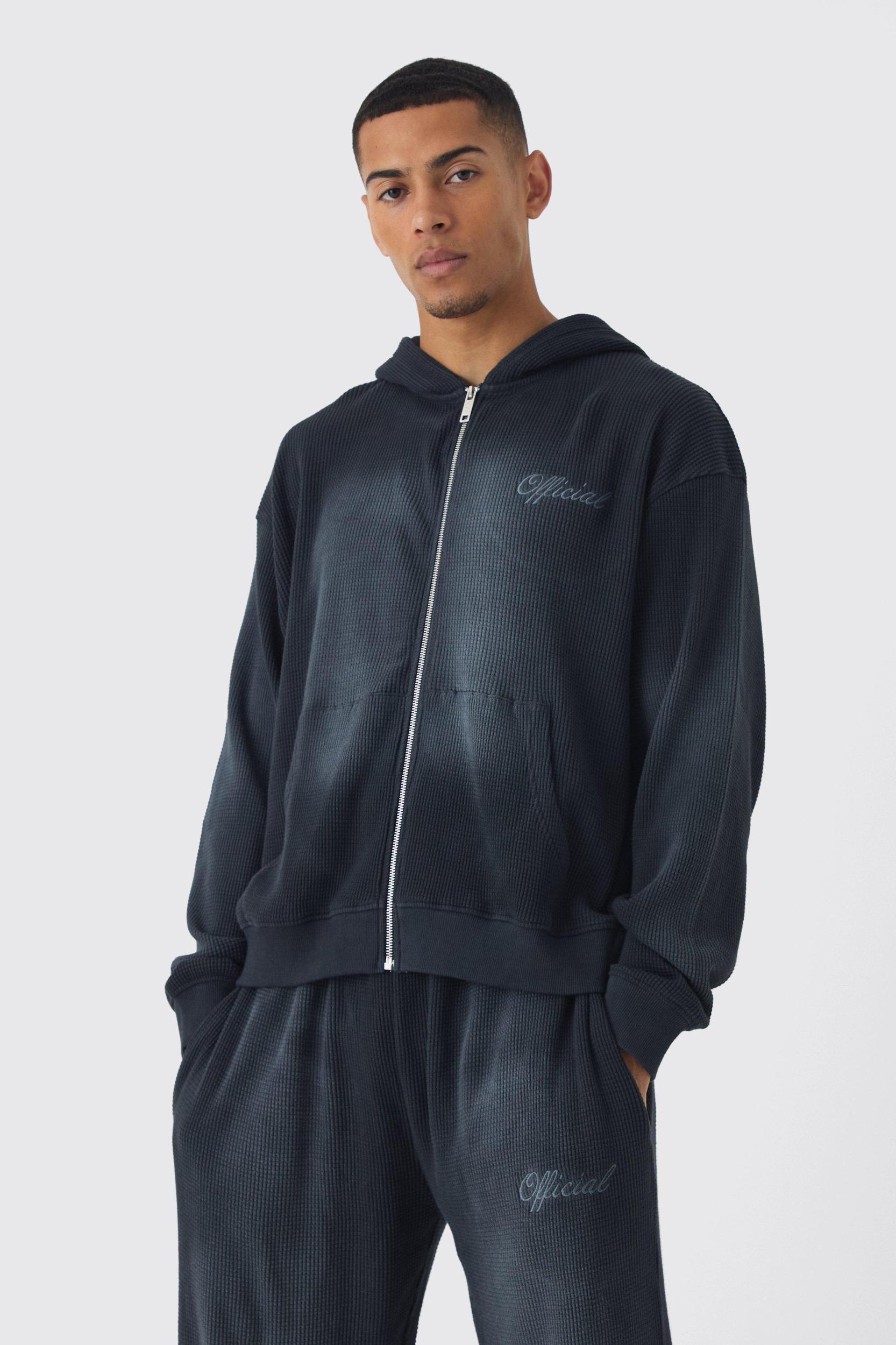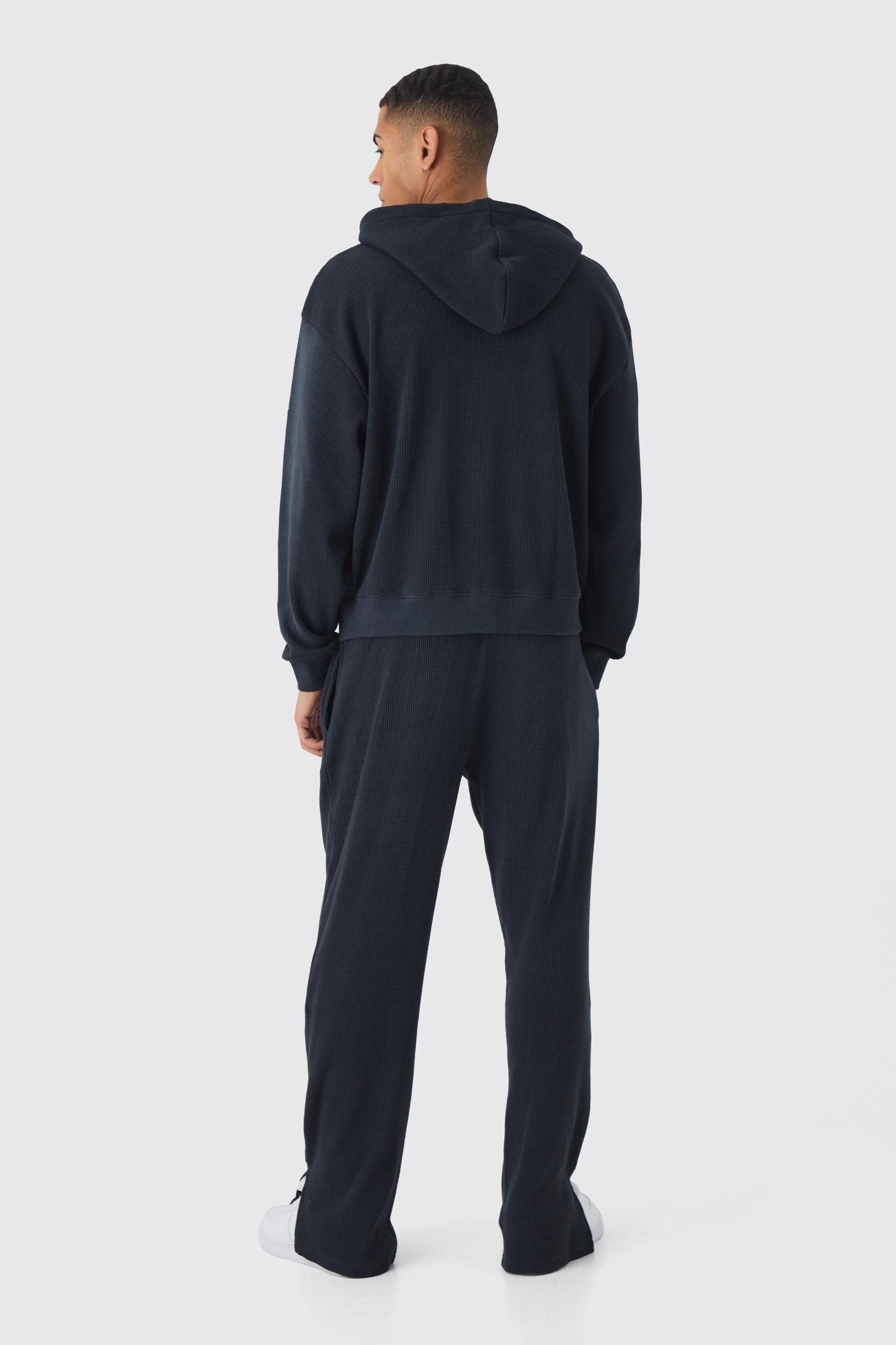 Create cool combos with hooded tracksuits from BoohooMAN. Mix and match shapes and colours with this uber-stylish collection of hooded tracksuits, designed to go from sofa to streets with no extra effort. Show off your lines with a skinny fit set, or pick an oversized hoodie and sweatpants duo for comfy street casual. With a white tee and sneakers you can rock any combo – how about all black for a bold monochrome, long sleeves and shorts for casual summer party vibes or even baby pink or blue for a softer aesthetic. Whichever you choose, with our range of hooded men's tracksuits you'll look effortlessly cool both in the gym and out.Style: Plain Long TracksuitFabric: WaffleLength: RegularNeckline: Hooded Zip ThroughSleeve Length: Long Sleeve