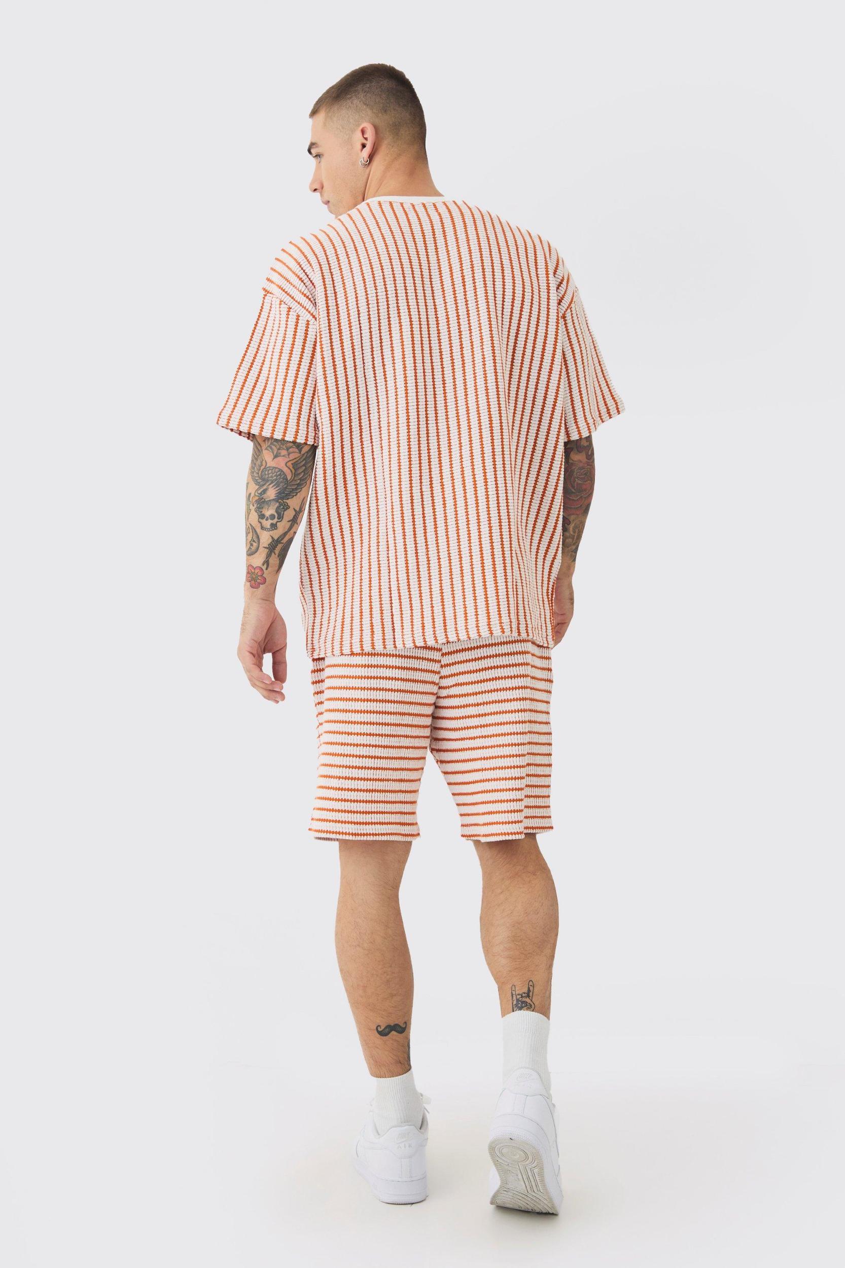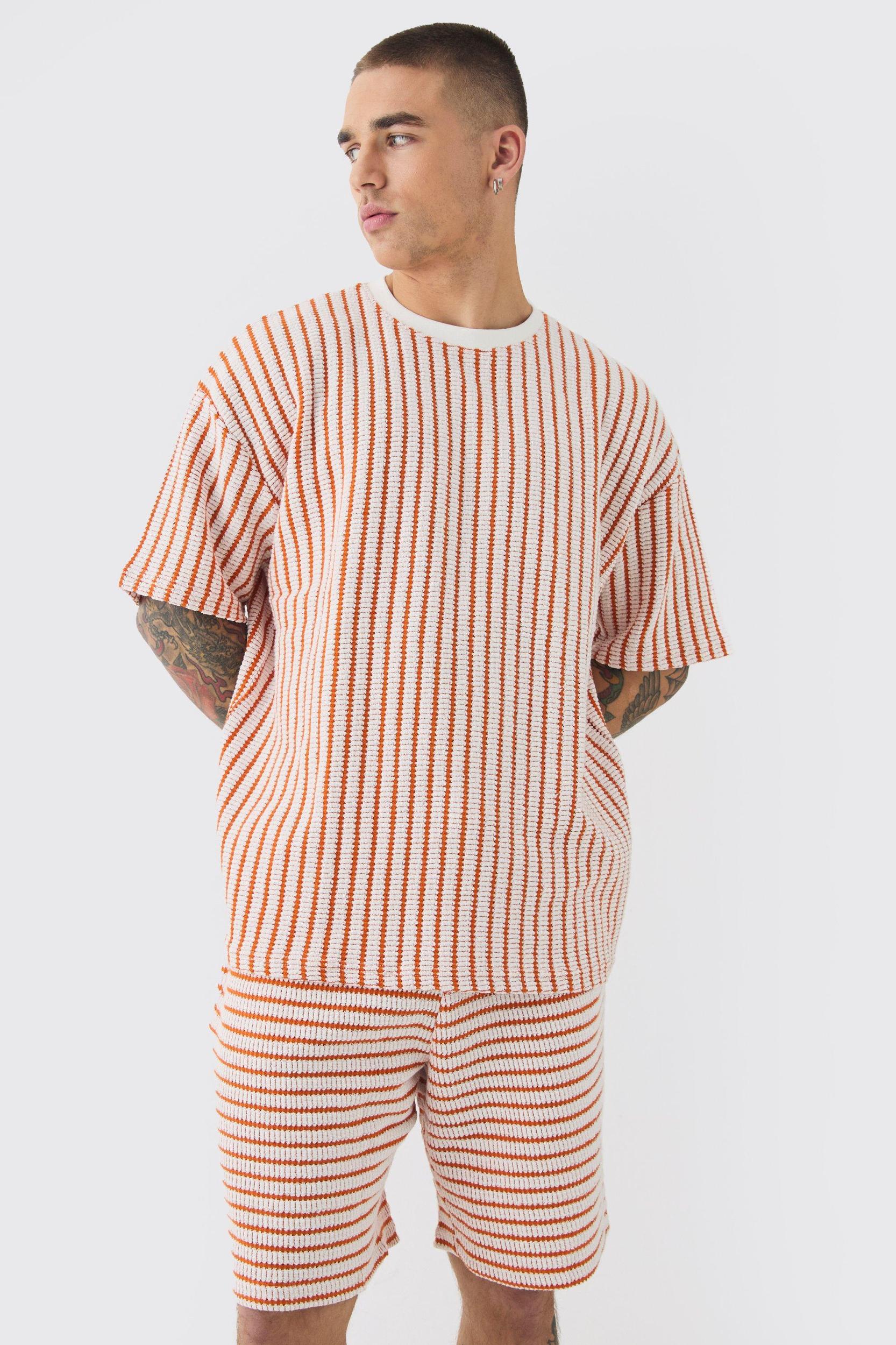 Give your tracksuits a permanent wardrobe residency. Sometimes there’s no stronger look than a full tracksuit and why would you get about in anything less than total comfort? Our men’s tracksuits are designed to give you a multi-purpose look which is both casual & comfortable. Whether it’s black, white, red, grey, skinny fit or regular, we’ve got tracksuits to box your activewear look off. Pair your tracksuits with white sneakers or an oversized t-shirt for a completely clean laid-back look. Style: T-Shirt & Shorts SetDesign: StripesFabric: CrochetLength: MidSleeve Length: Short Sleeve