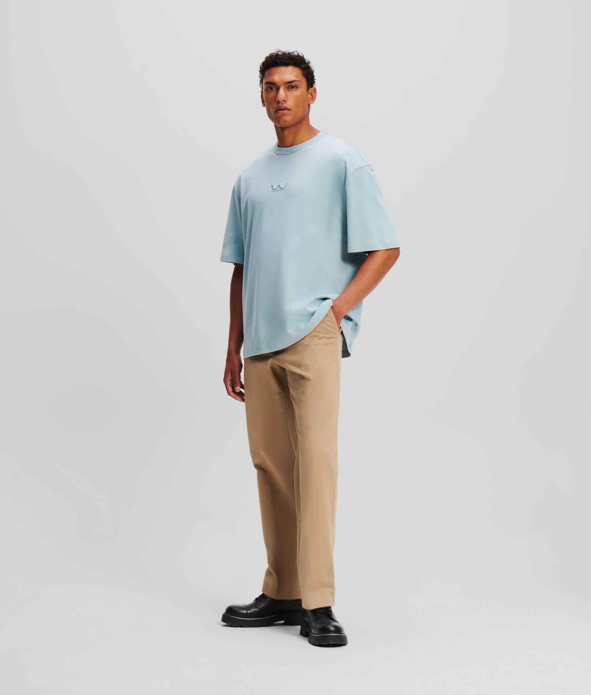 Enjoy a relaxed outlook with this oversized T-shirt, boasting a ribbed crew neck and short sleeves. Cut from organic cotton, the relaxed silhouette offers unrivaled comfort, while an embroidered sunglasses motif adds a discreet homage to the KARL LAGERFELD legacy.