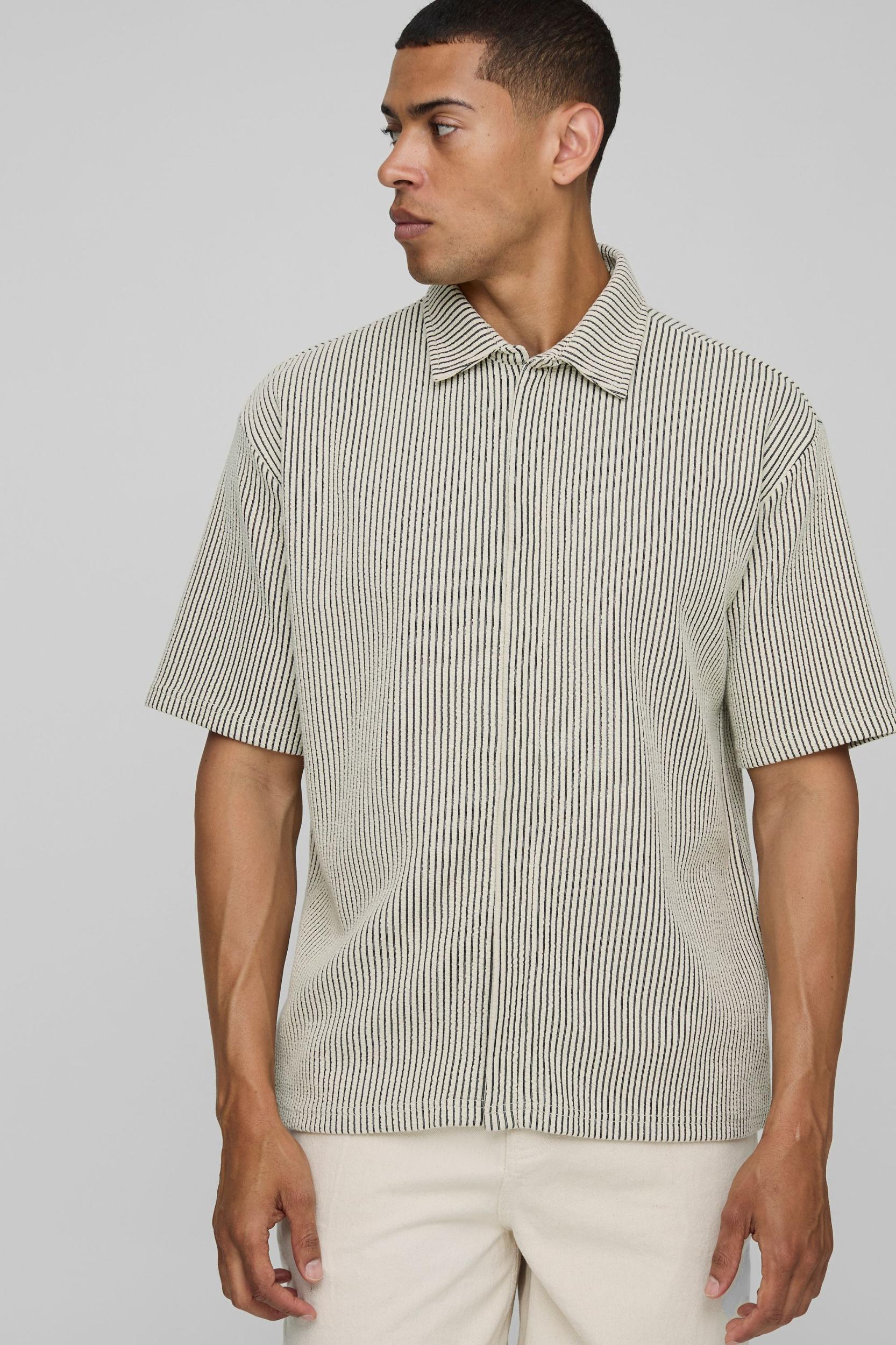 Oversized Two-Tone Ribbed Jersey Concealed Placket Shirt | boohooMAN USA
