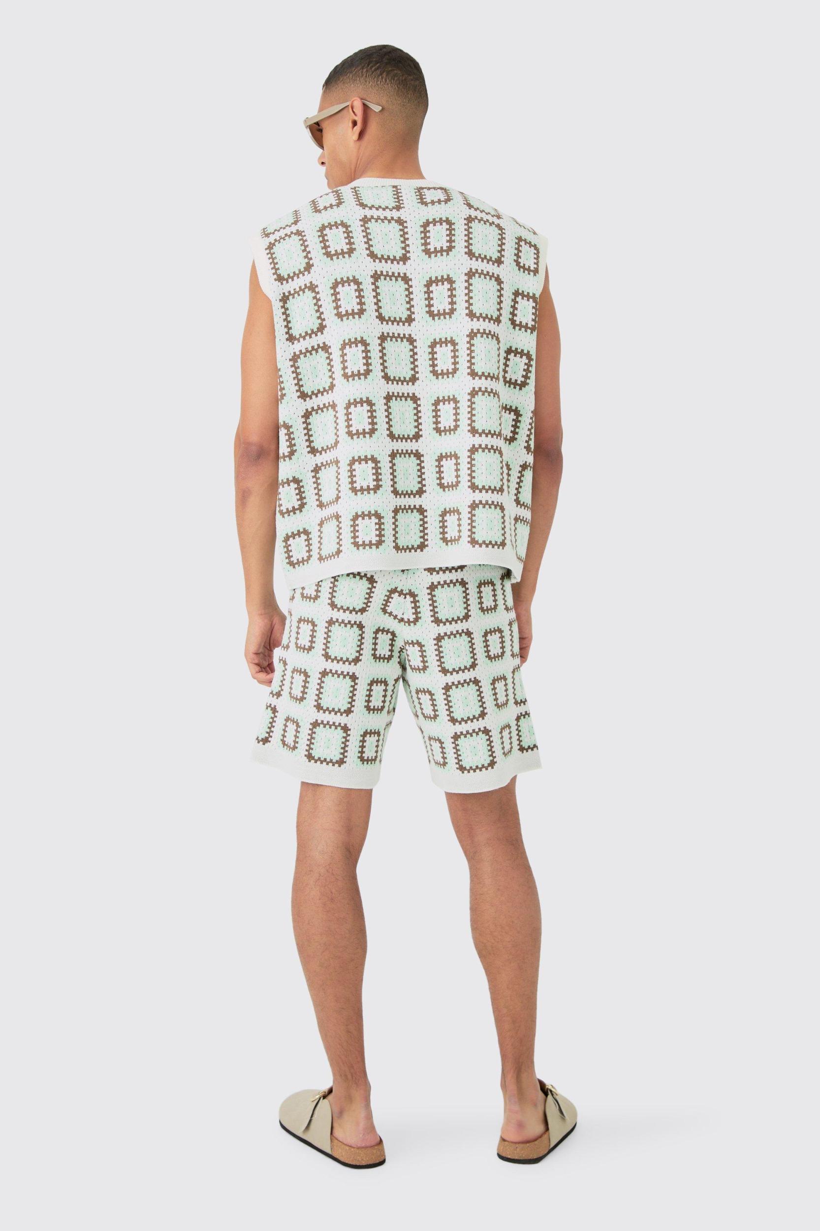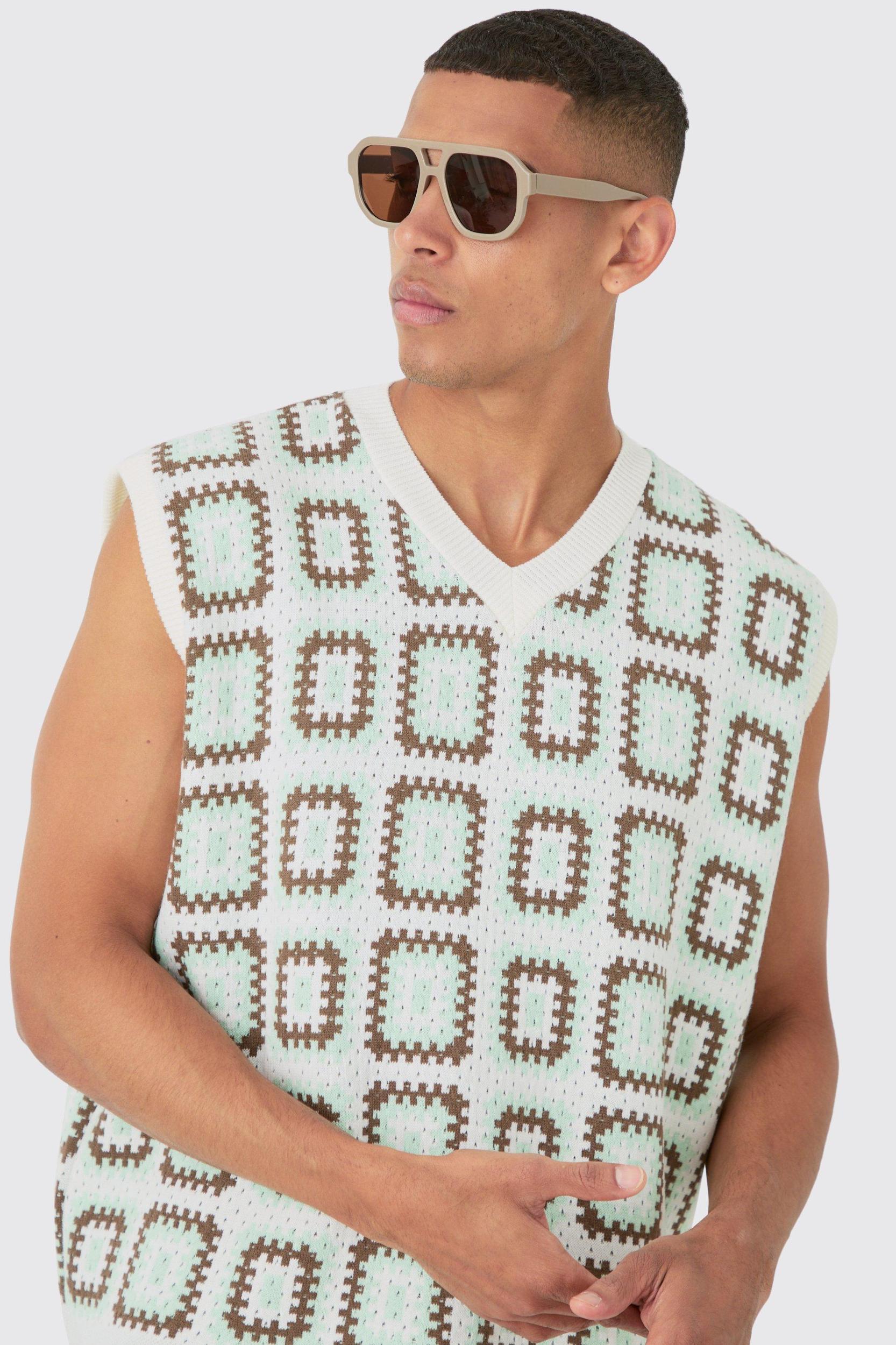 Oversized V Neck Crochet Knitted Tank | boohooMAN USA