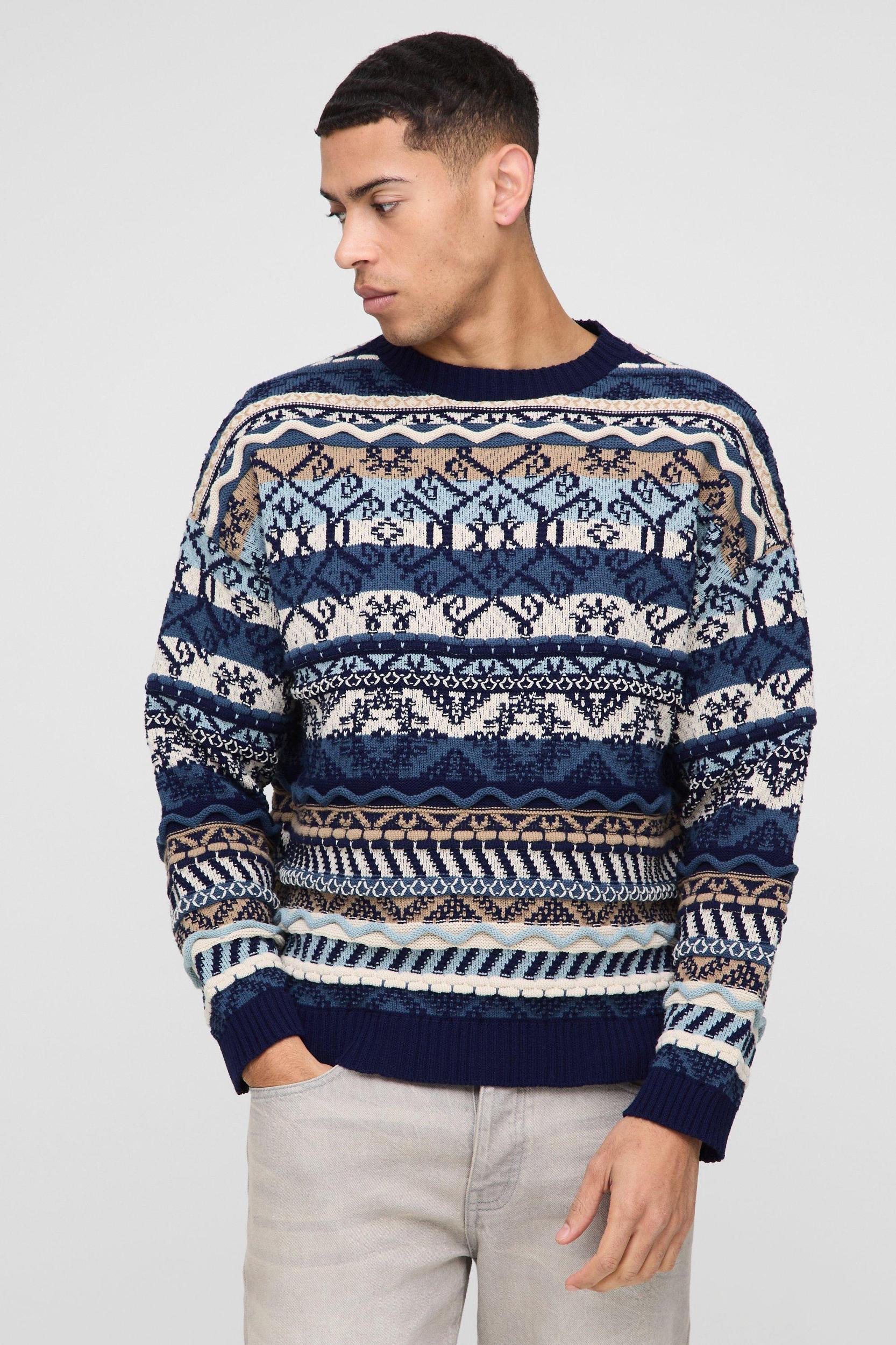Oversized Vintage Textured Knitted Sweater | boohooMAN USA