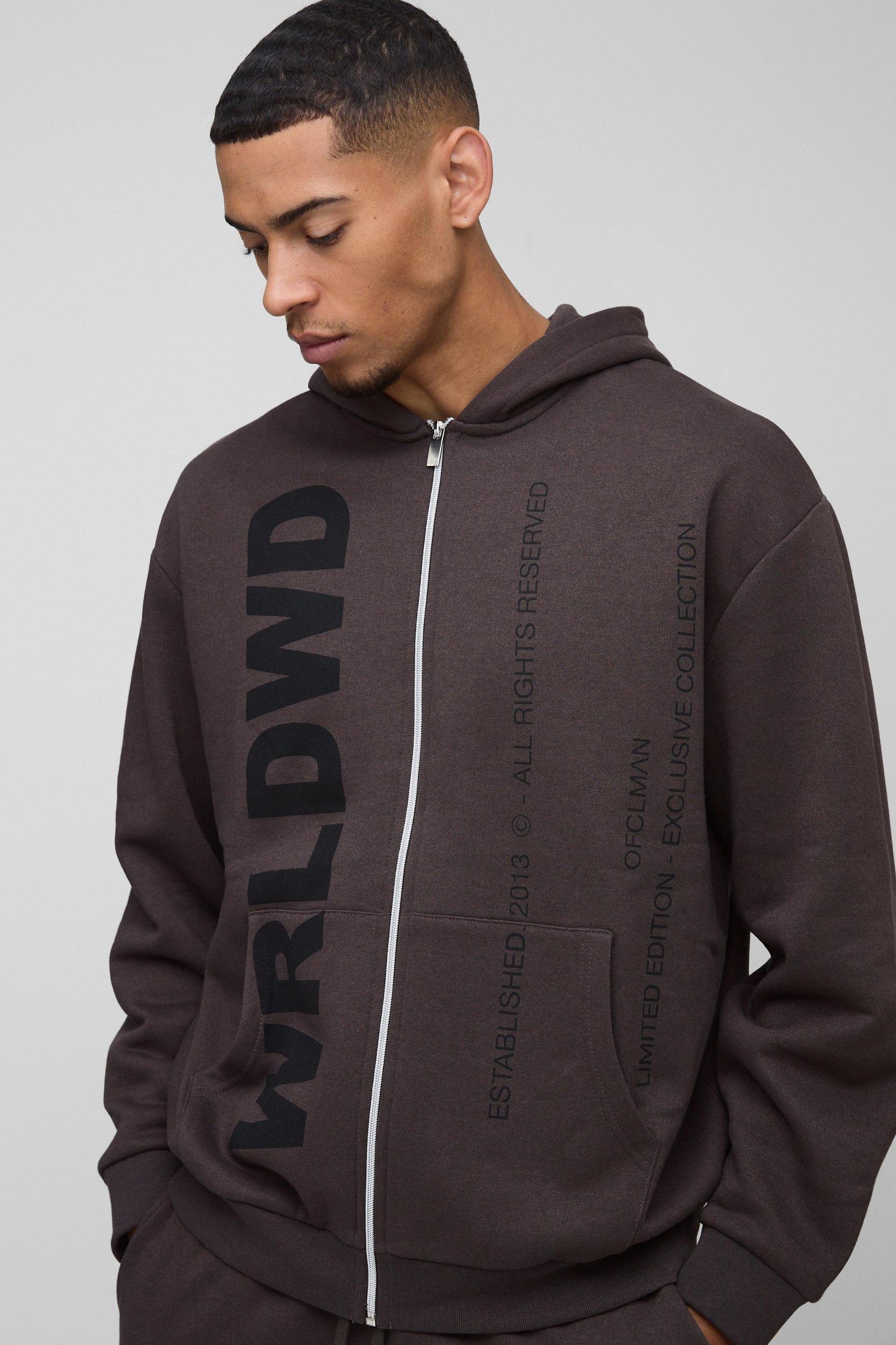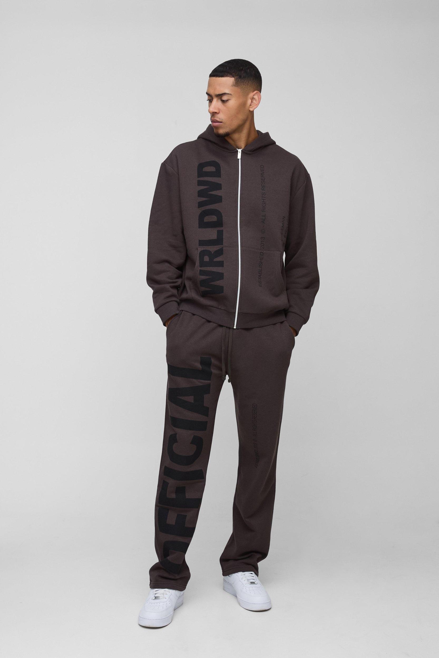 Oversized Worldwide Official Text Print Zip Through Tracksuit | boohooMAN USA