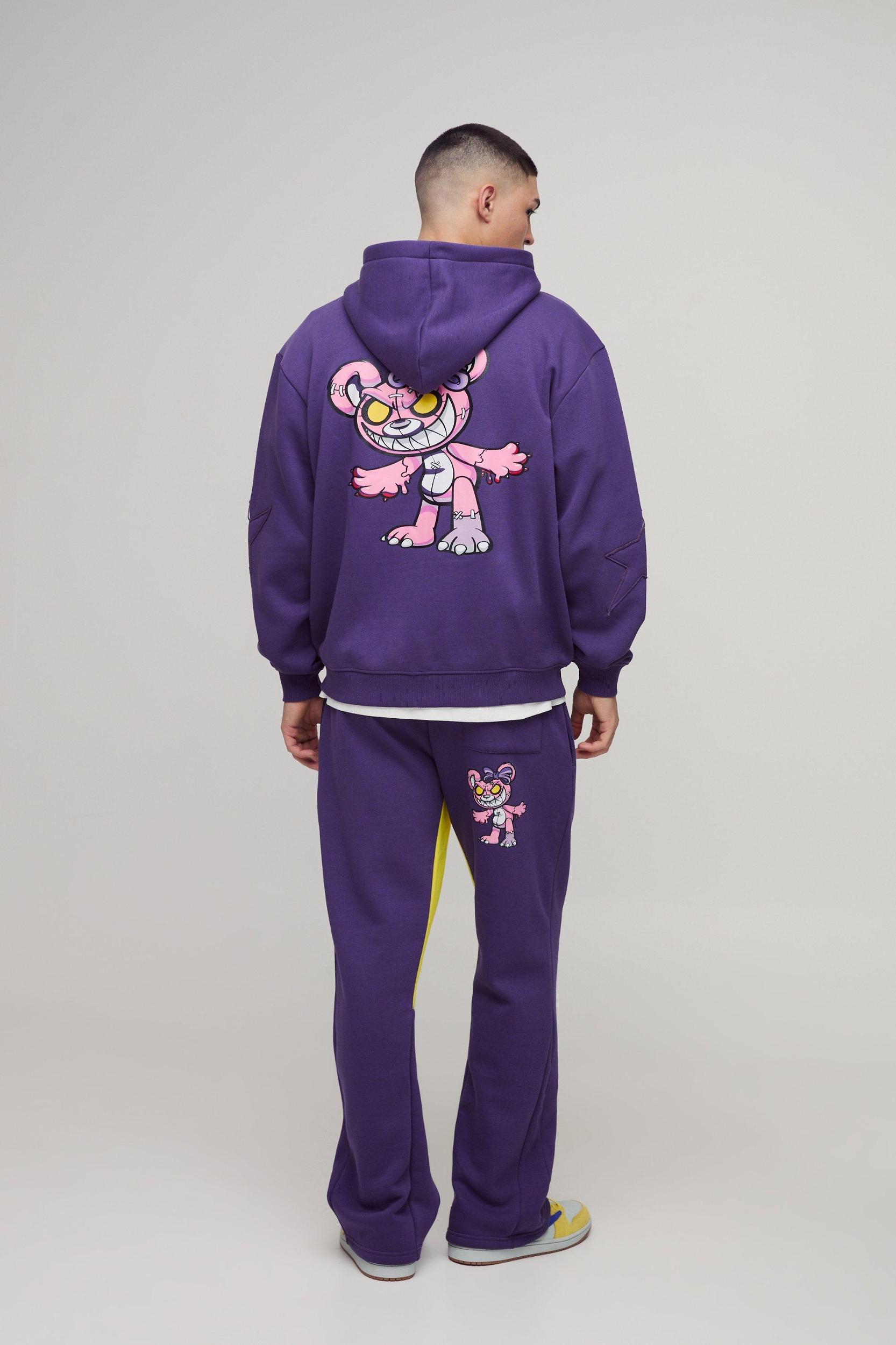 Oversized Zip Through Evil Teddy Printed Applique Hooded Tracksuit | boohooMAN USA