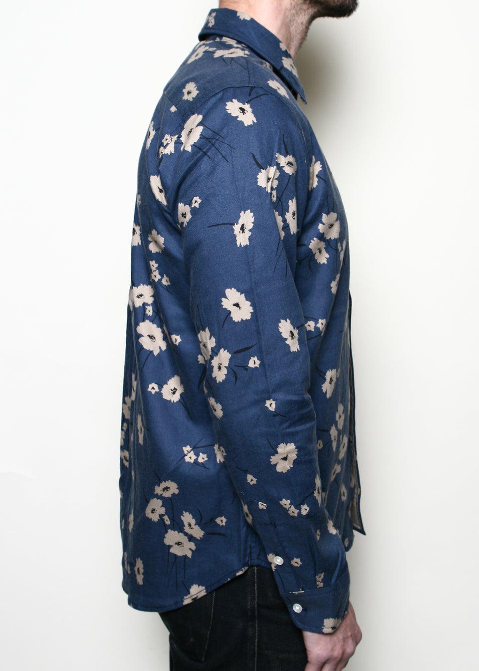 FIT // Slim Fit FABRIC // 4.5oz 100% cotton brushed Japanese twill – Single chest pocket– Box pleat at back yoke– Double needle chainstitch seams– Pearl buttons– Natural herringbone locker loop– Sewn in Los Angeles, Calif. HOW WE MEASURE OUR TOPS // SIZING GUIDE Measurements (in inches) taken flat, +/- 0.25″ tolerance