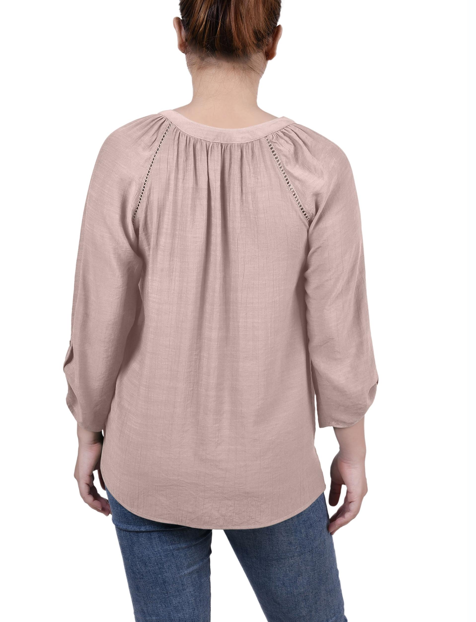 Oxford Tan Raglan Sleeve Split Neck Blouse