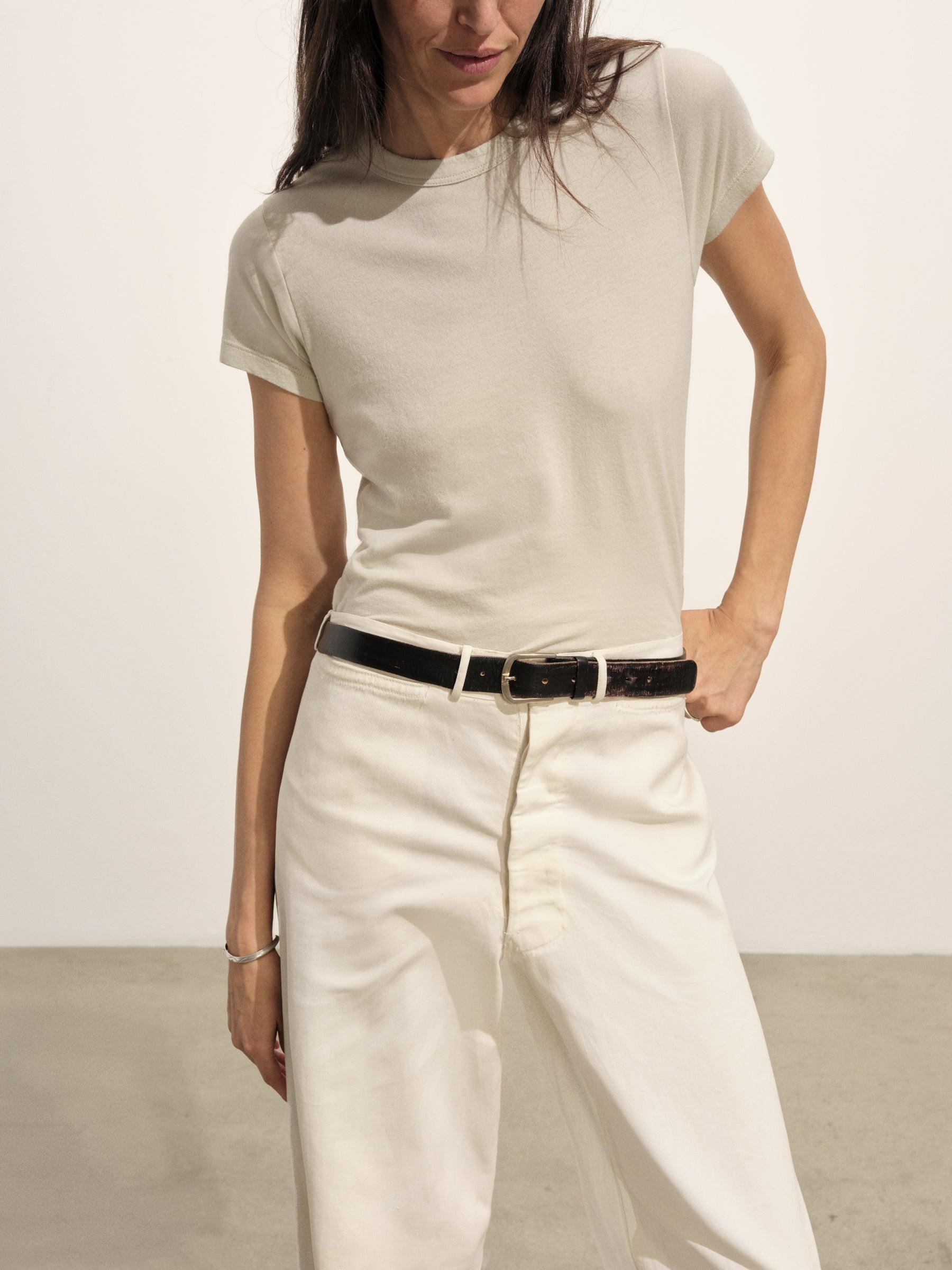 Slim fit crewneck tee cut from a supersoft 130 GSM bamboo/cotton/wool blend.