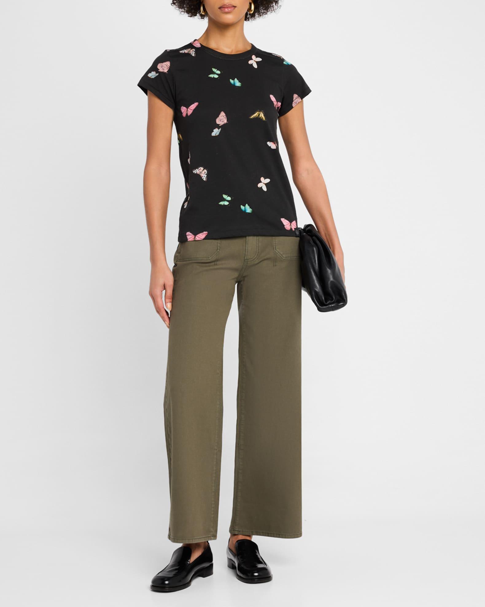 Rag & Bone "Ozzy" classic tee featuring an allover butterfly print Crew neckline Short sleeves; approx. 12.4"L Classic fit Hem sits at the hip Pullover style Cotton/polyester/elastane Machine wash cold Imported