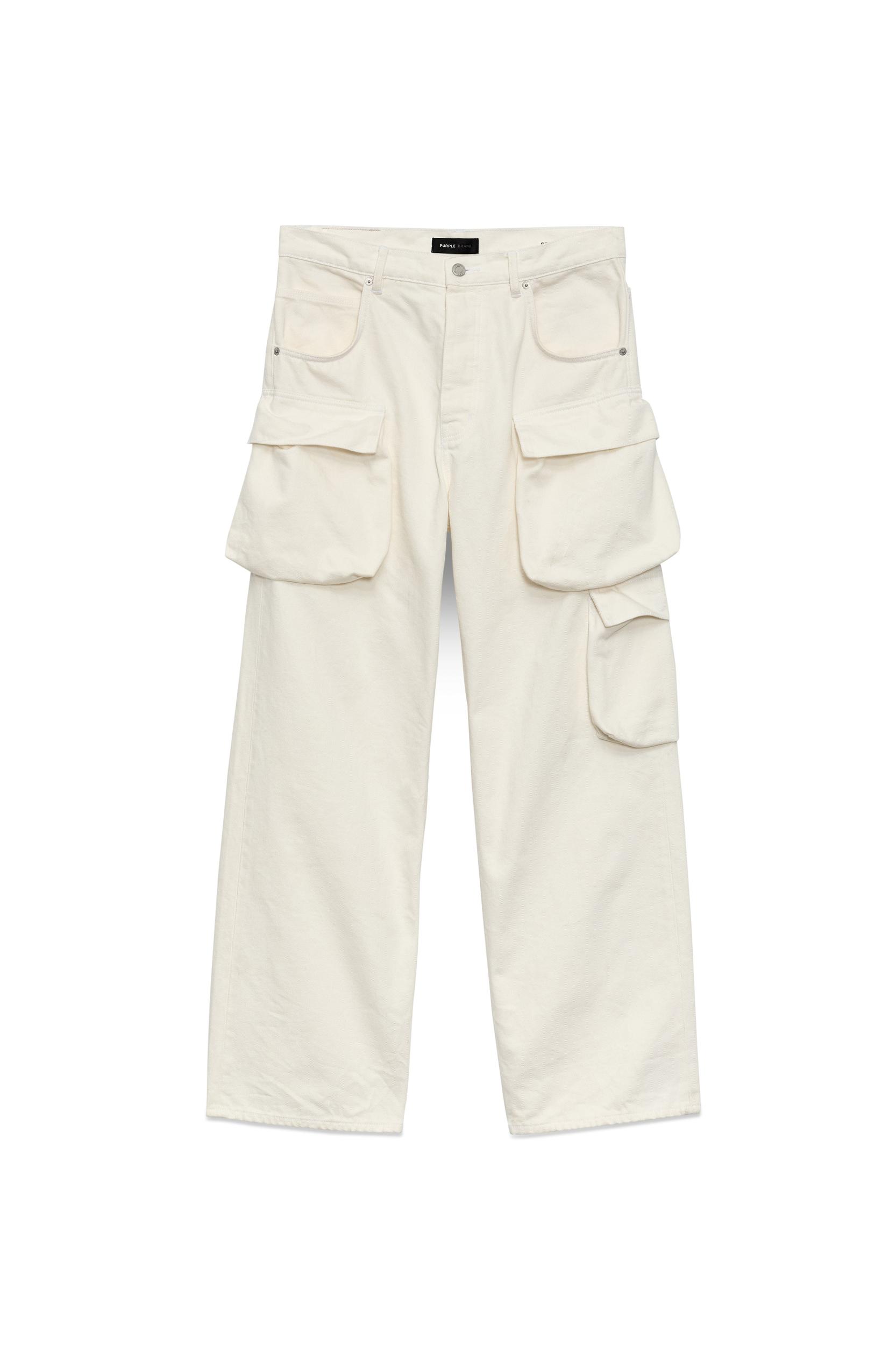 Crafted from premium white stretch denim, this mid-rise baggy leg is detailed with triple cargo pockets and cotton lining for a more comfortable fit. Pre Fall 2024 White Label Premium stretch denim - 100% Cotton 14" Front Rise, 17 1/4" Back Rise, 32 1/2" Inseam, 11" Leg Opening Includes signature Purple hangtag and branded leather patch on back Lined back pockets and yoke for comfort and to help retain shape with wear Back pockets feature subtle bar-tack stitching and hidden rivets for added durability Dart between side seam & back pocket to enhance fit Belt loops and front pockets reinforced for durability Button fly All Purple jeans feature unique washes and dye methods and are finished individually by hand - no two pieces are the same. Each jean is packaged and secured with ties to preserve custom details like our the 3D wrinkle effect or custom paint finishes while shipped.