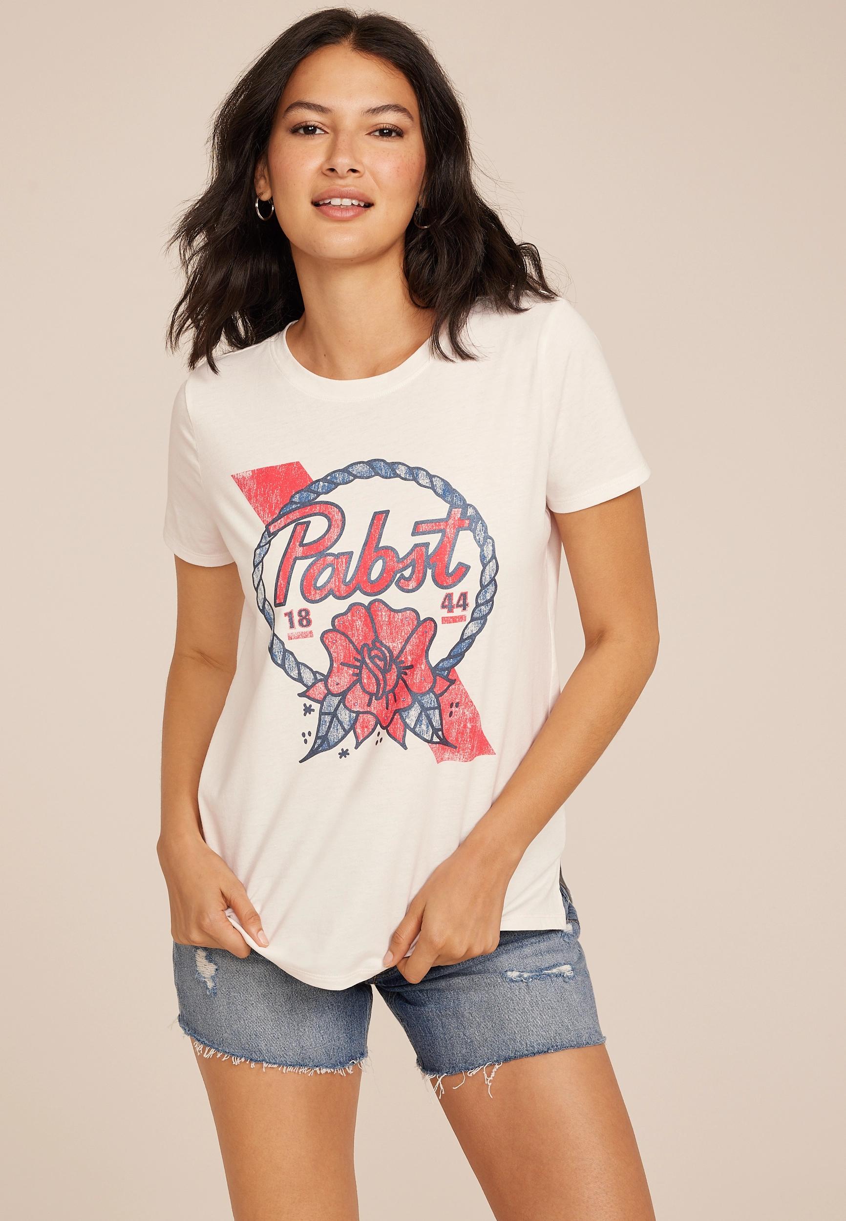 Extra relaxed and trend-right for cool gals and comfort lovers alike. .mar-pdp-section .mar-product-description {color: #000;}.mar-pdp-section .mar-product-description ul, .mar-pdp-section .mar-product-description ul>li {margin-left: 10px;padding-left: 10px;}.mar-pdp-section .mar-product-description .mar-product-description-content ul li{list-style-type: disc;margin: 0 0 5px;padding-left: 5px;}.mar-pdp-section .mar-product-description p {color: #000;padding: 5px 0;}@media only screen and (max-width: 1023px){.mar-pdp-section .mar-product-description .mar-product-description-content ul li{list-style-type: disc !important;} .mar-pdp-section .mar-product-description .mar-product-description-content .mar-tab-content ul{padding-left: 10px;}.mar-pdp-section .mar-product-description .mar-product-description-content .mar-tab-content {font-weight: 300;}} Features: comfortable fabric easy stretch solid versatile color inchPabst inch 1844 floral graphic crew neck short sleeves straight hem