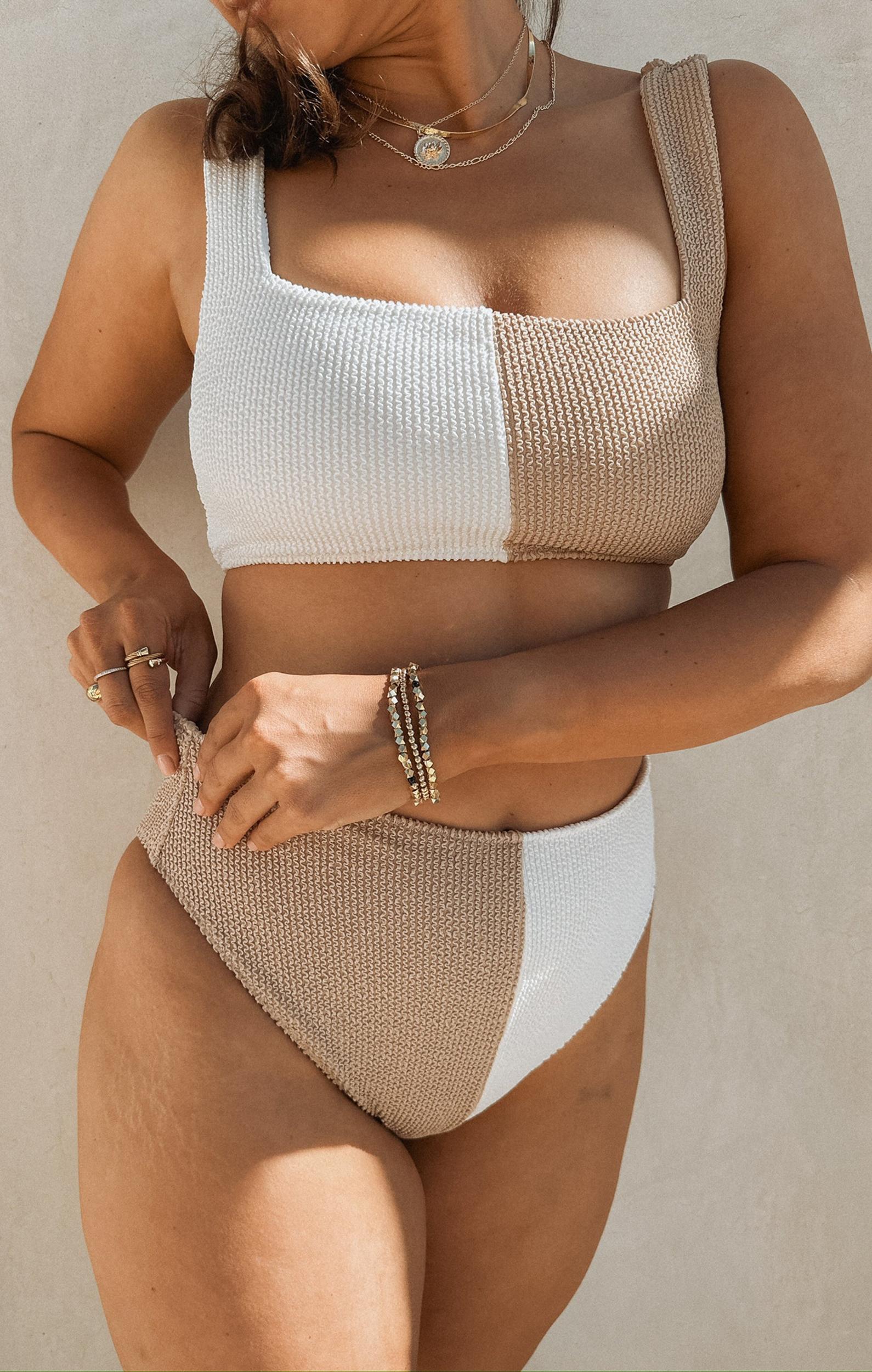 Lounge on the beach and enjoy the sound of the waves or sit poolside and soak up the rays! With a classic square neck and our signature scrunch fabric, this top will fit like a dream and stay put all day long! Perfectly pairs with our Sail Bottom in vanilla latte scrunch.