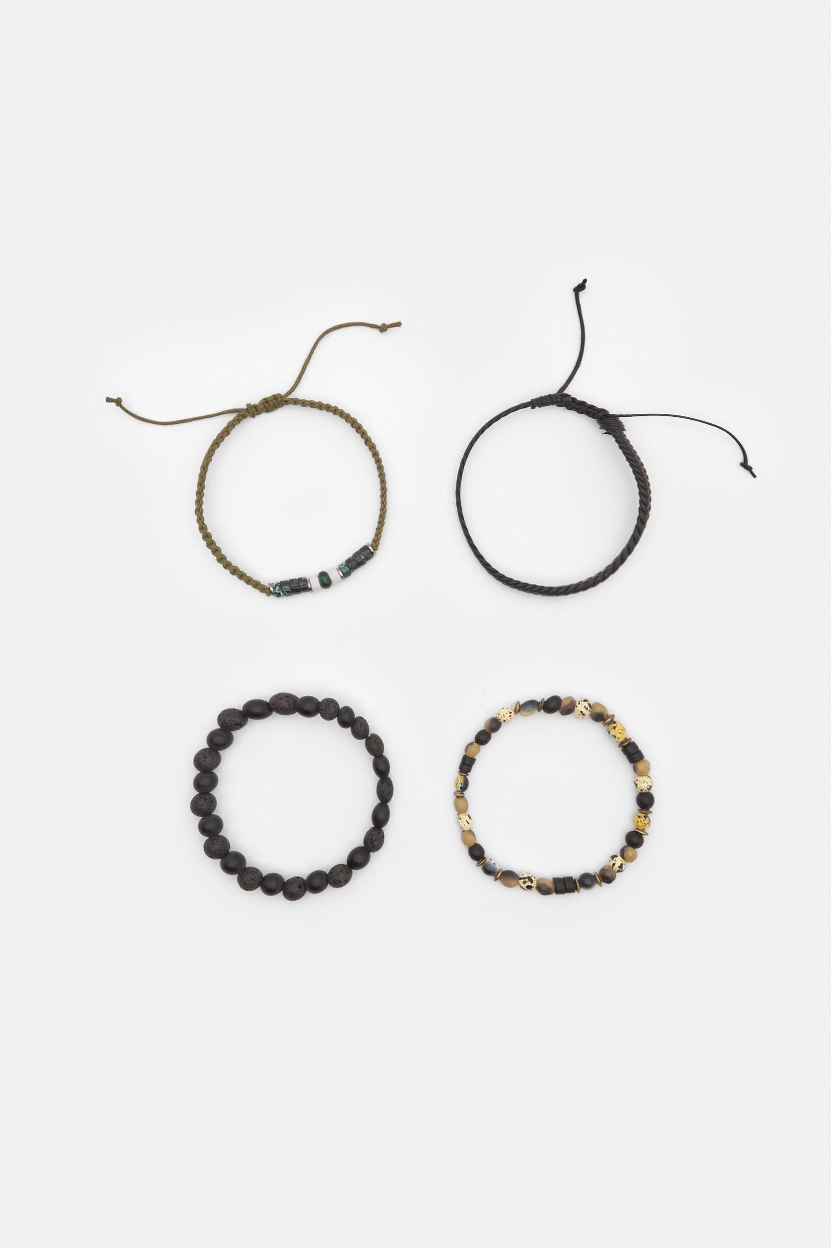 Pack of 4 bead and cord bracelets.