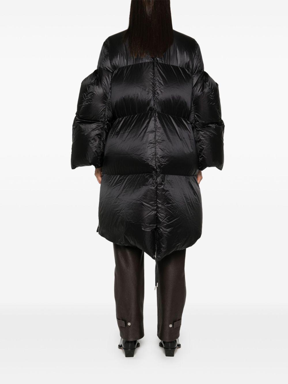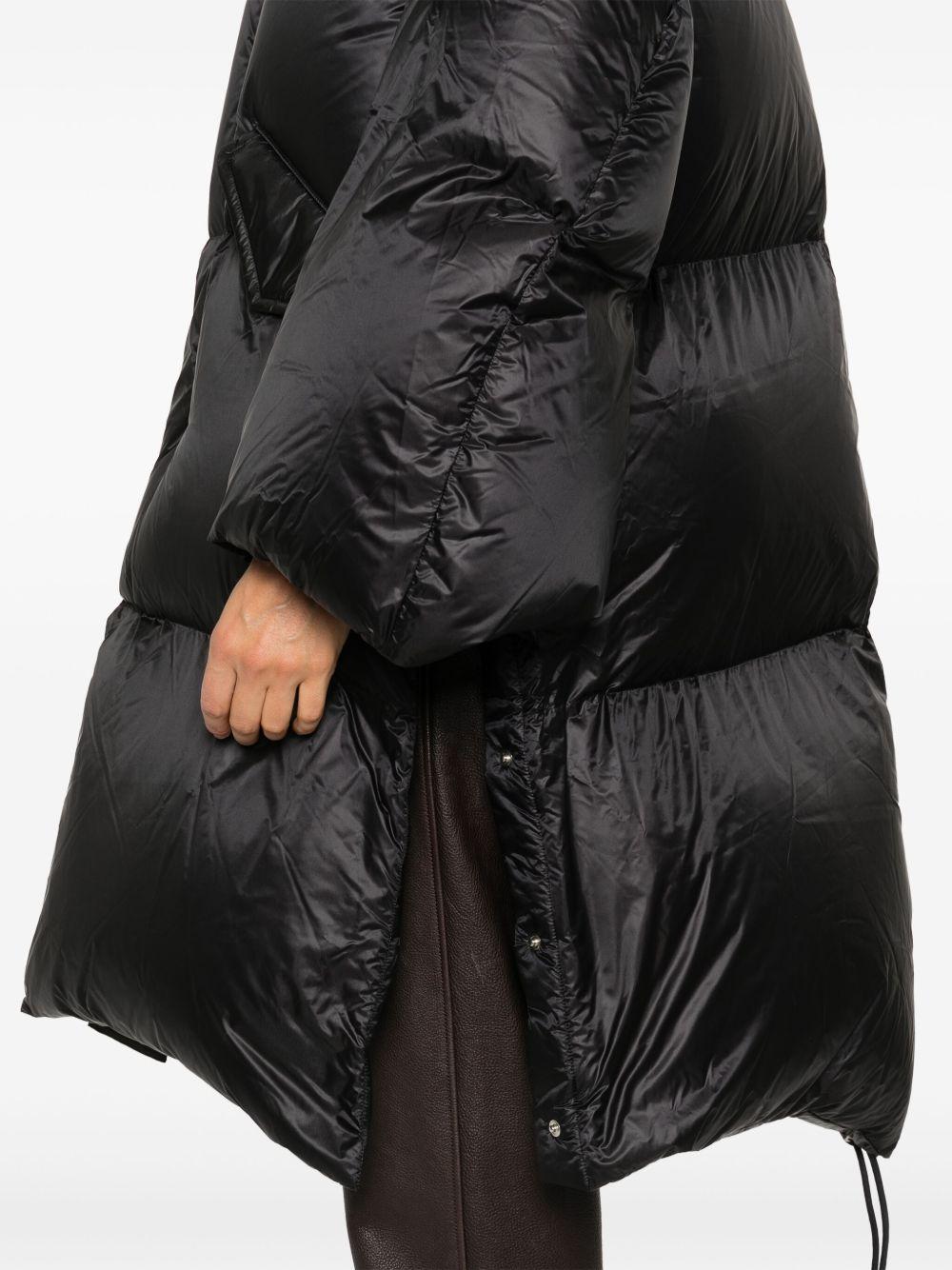 sacai padded coat | Black | black | textured finish | quilted | concealed front button fastening | concealed front zip fastening | padded design | stand-up collar | long sleeves | two side flap pockets | side press-stud detailing | straight hem | Nylon/Polyester/Down/Feather | Single Breasted Coats | Coats | Clothing | Women