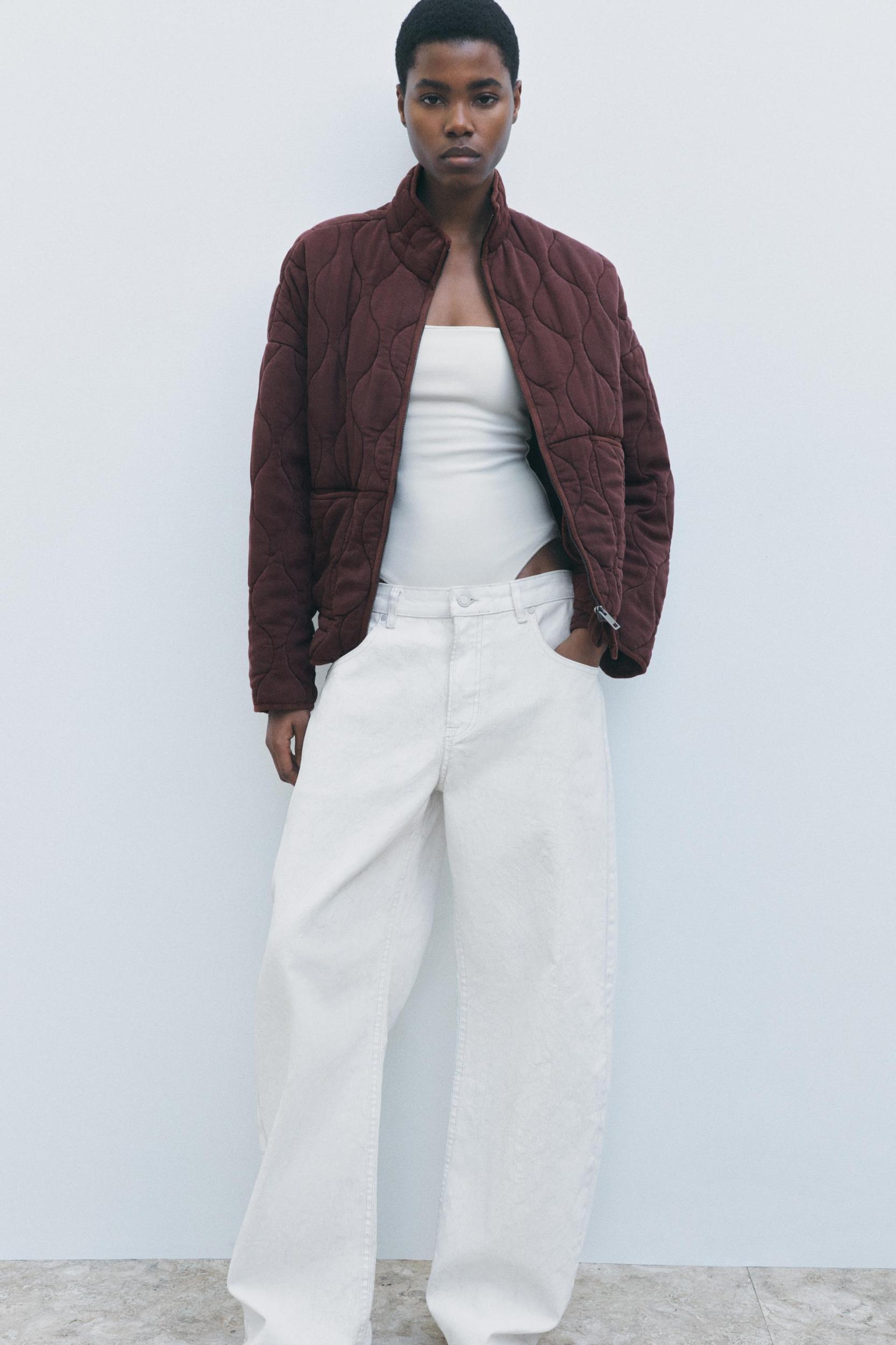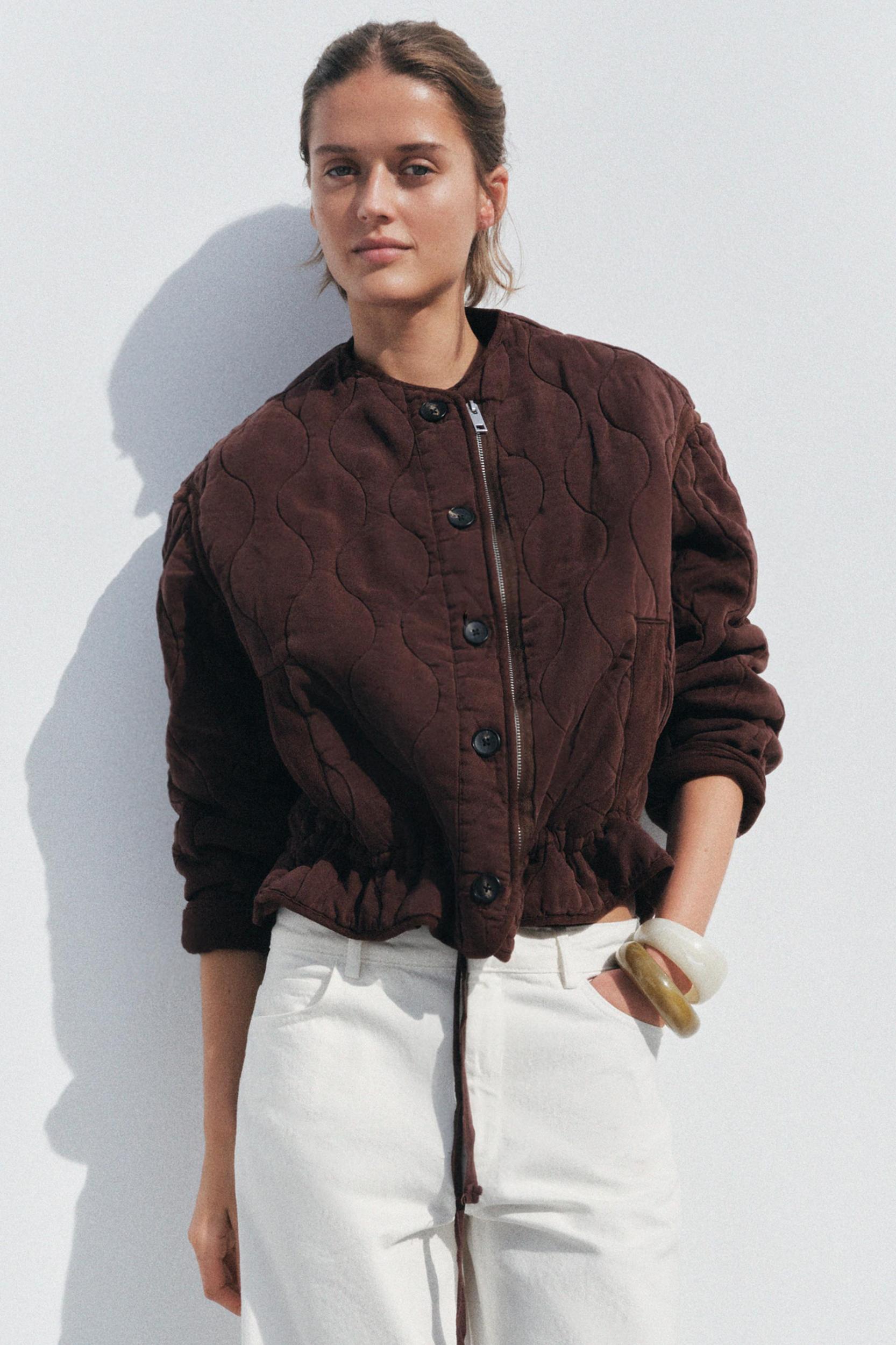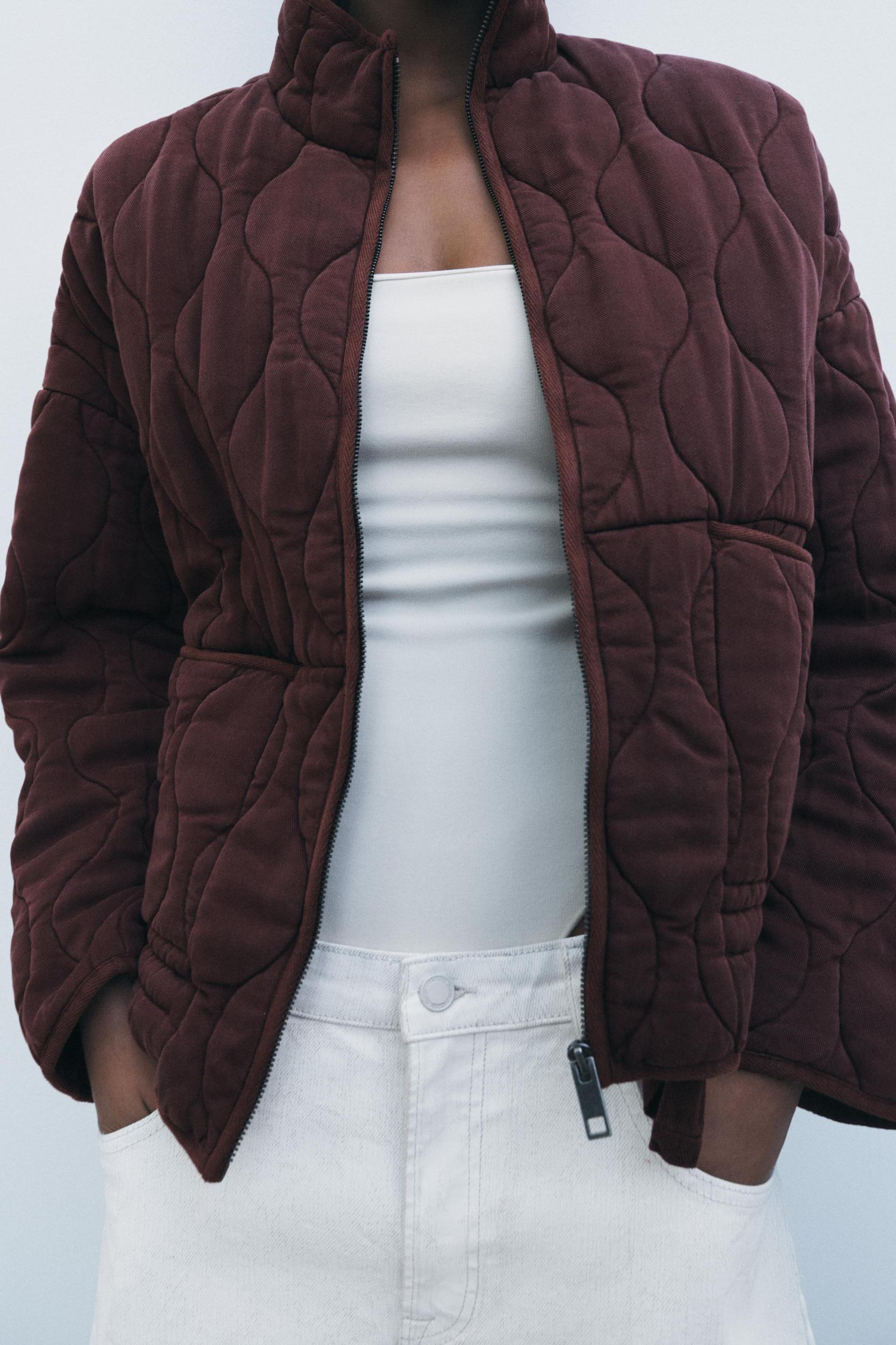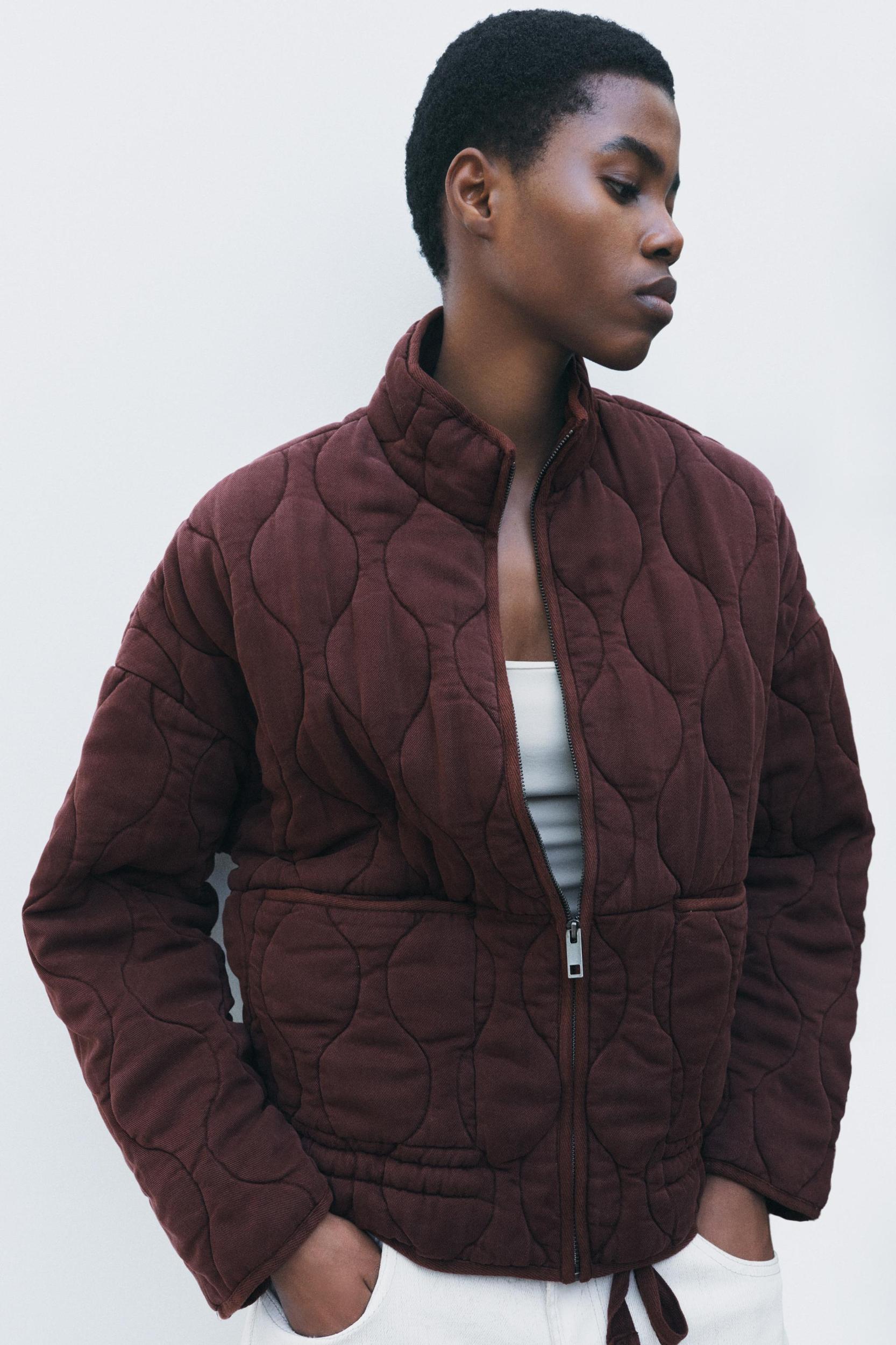 ZARA WOMAN COLLECTION Padded jacket made of lyocell yarn. Perkins collar and long sleeves. Front patch pockets. Adjustable drawstring hem. Front metal zip closure.