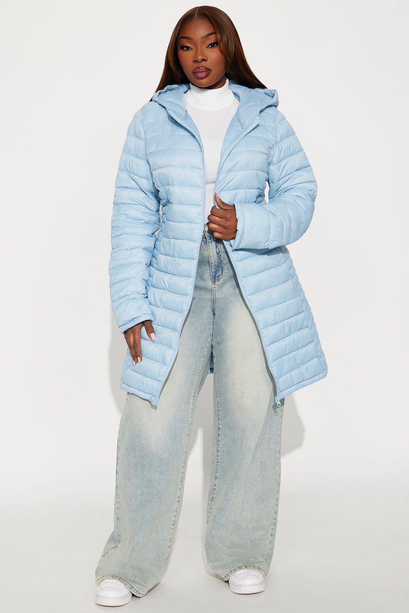 Padded Landing Puffer Coat - Light Blue Female