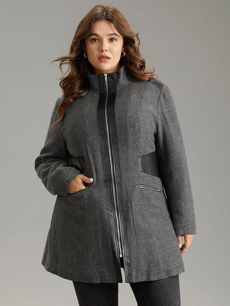 Shop Padded Patchwork PU Leather Zipper Coat now and redefine your style with confidence at BloomChic. Tailored for mid and plus-size women. This trendy Outerwear Women, sizes 10-30. Season:Winter;Color:Black;Style:Casual;Pattern Type:Plain;Details:Pocket, Patchwork, Zipper, Contrast, Lined, Texture;Pocket:It is perfectly sized to carry a phone.;Belt:No-belt;Closure Type:Zipper;Lining:Lining