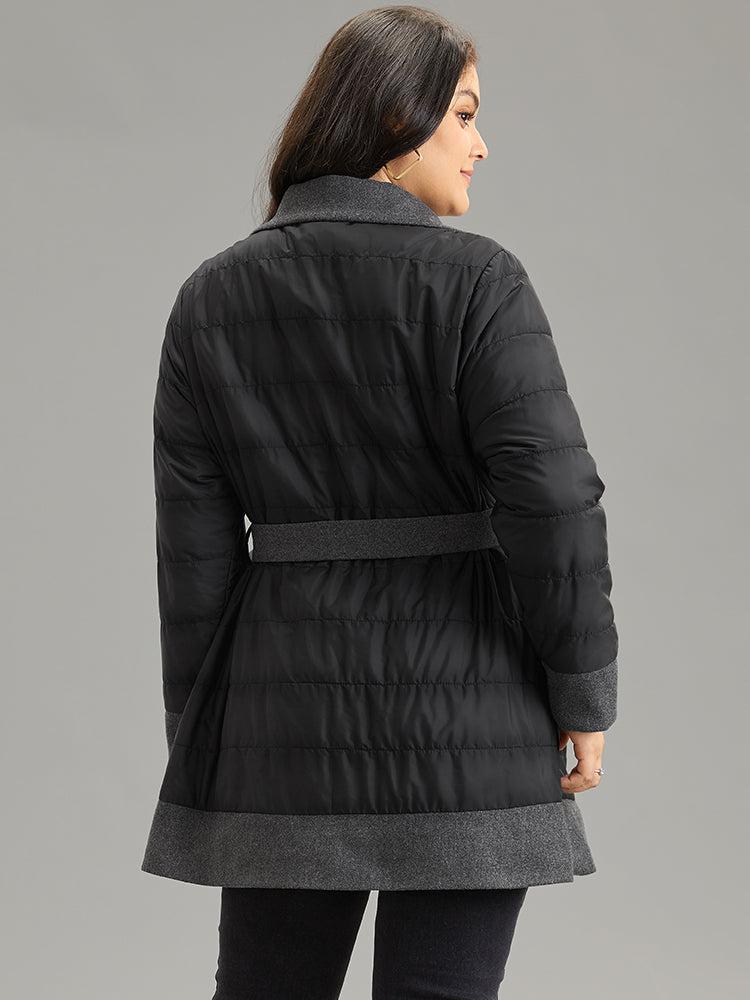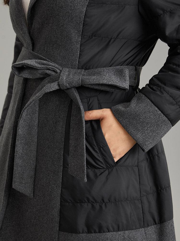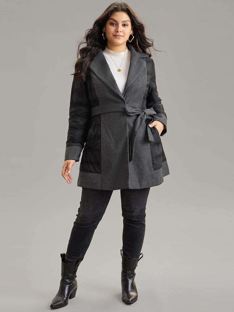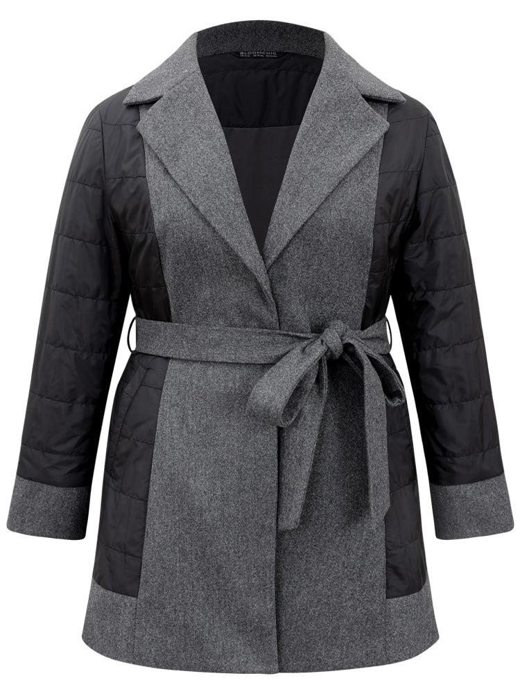 Shop Padded Patchwork Tweed Belted Lapel Collar Coat now and redefine your style with confidence at BloomChic. Tailored for mid and plus-size women. This trendy Outerwear Women, sizes 10-30. Season:Winter;Color:DimGray;Pattern Type:Plain;Details:Pocket, Patchwork, Contrast, Belted, Lined;Pocket:It is perfectly sized to carry a phone.;Belt:Belt;Lining:Lining