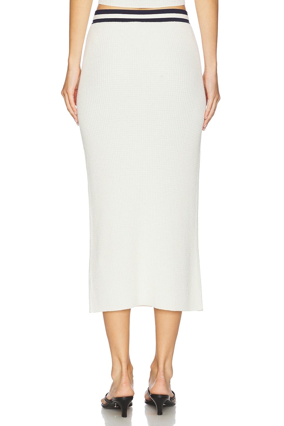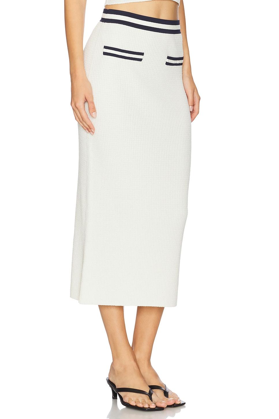 44% rayon, 28% cotton, 27% nylon, 1% spandex. Dry clean only. Unlined. Pull-on styling. Elasticized waistband and front faux slip pockets. Midweight ribbed knit fabric. Item not sold as a set. Skirt measures approx 34" in length. Made in China. Revolve Style No. JSKI-WQ123. Manufacturer Style No. 325-3033-K.
