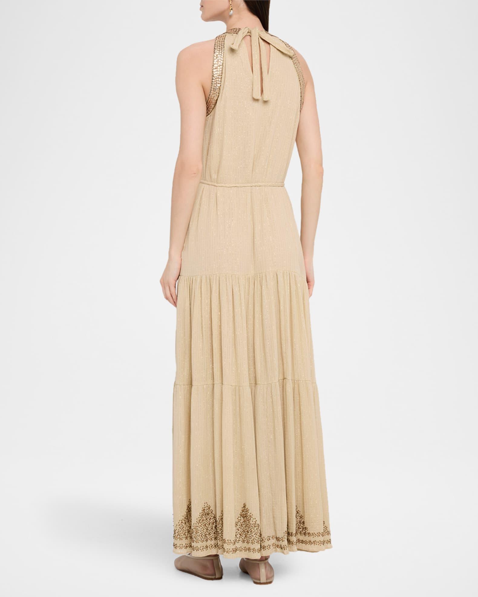 Paige Beaded Tiered Halter Maxi Dress