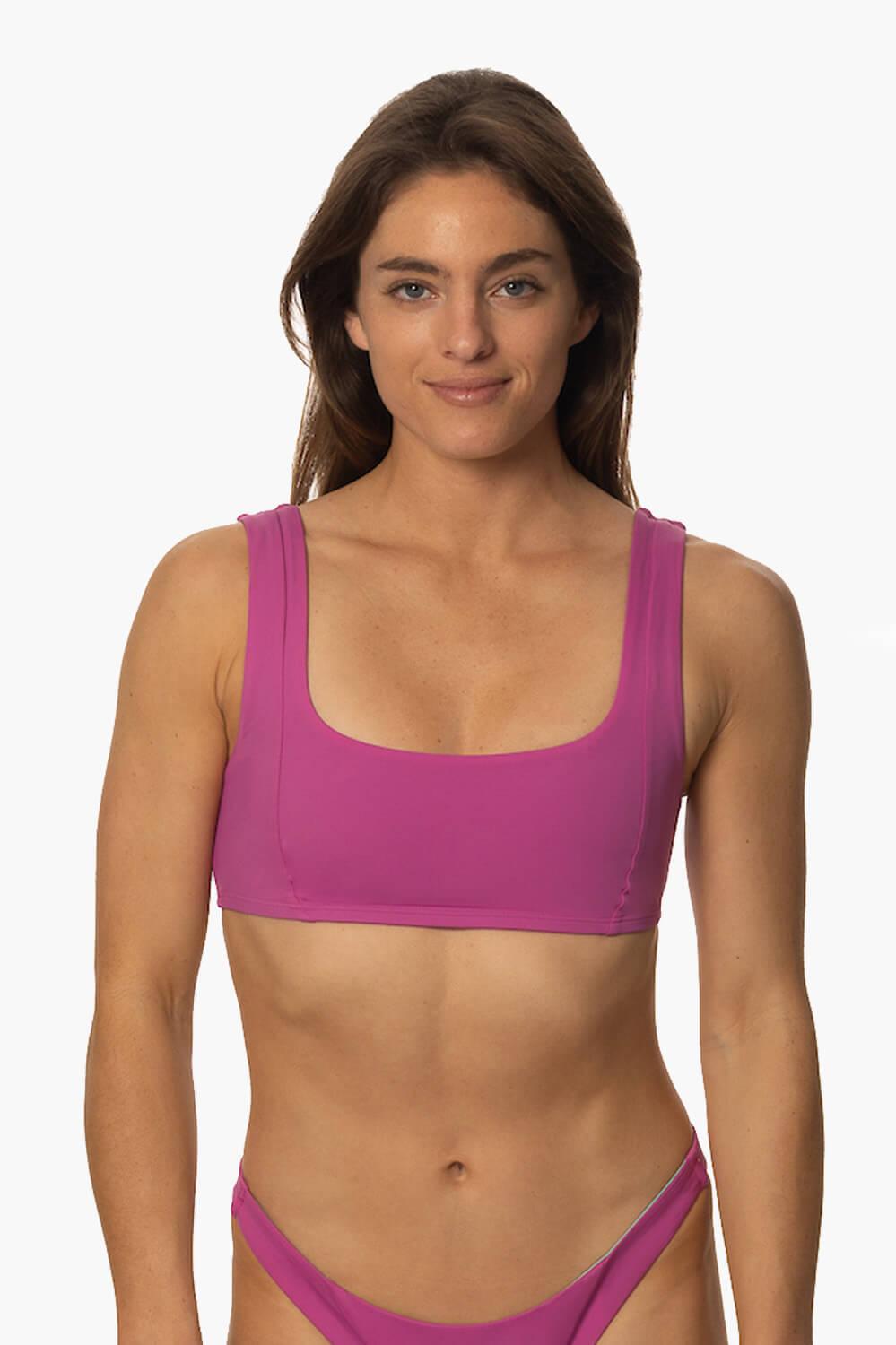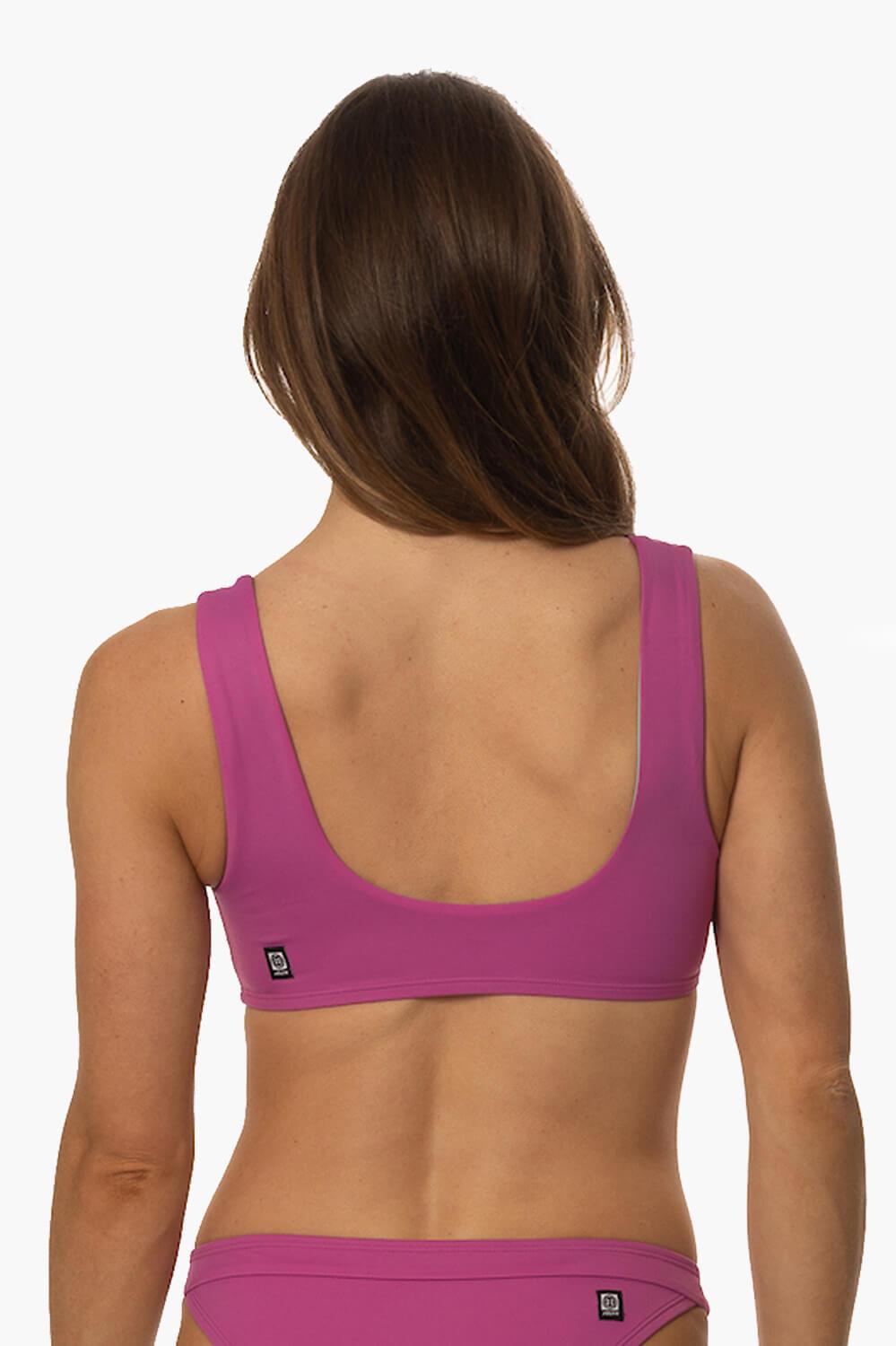 The Paige women's bikini top is the classic scoop-neck bikini top with a little flair. Surf and stay stylish with contrasting pannels and scooped neck and back, this top will stay on no matter what the conditions are. Wear this surfing bikini top in the water or double it as a bra, thanks to clean finishes, and made with our stylish yet athletic recycled Sea-flex fabric. Get active and stay stylish during all the sunny beach days and big waves ahead. Features: Good for: Surfing, paddling, ocean activities, lifestyle Contrast Scooped Neck 1 1/2” wide straps at top of the shoulder. Medium/Full Coverage (4) High Impact (5) Lined for maximum privacy Tagless for maximum comfort Chlorine Resistant Pair with Valentina Bikini Bottom True to size Fabric Composition: Recycled Sea-Flex fabric Made out of recycled fishing nets and other discarded nylon UPF 50+ Shell: 78% Recycled Nylon 22% Elastane Liner: 78% Recycled Nylon 22% Elastane Care Instructions: Hand wash cold Hang dry Do not iron, dry clean or bleach