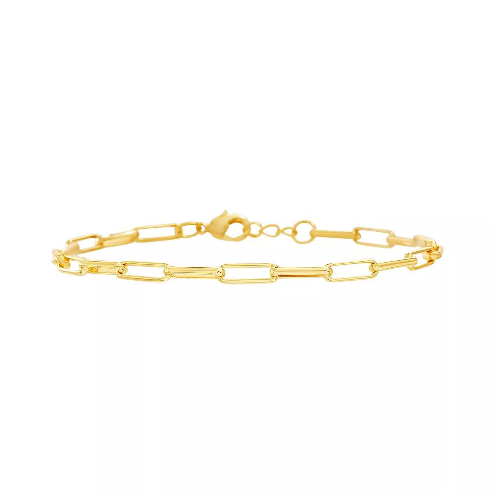 Finish off your look with a chic touch of minimalist flair in this 14k gold plated recycled brass Paige Harper paperclip link chain bracelet. Finish off your look with a chic touch of minimalist flair in this 14k gold plated recycled brass Paige Harper paperclip link chain bracelet. Length: 7.5 in. Nickel free Metal: 100% recycled brass Plating: 14k gold Finish: polished Packaging: boxedSUSTAINABILITY FEATURES Contains recycled materials Gemstones may have been treated to enhance their appearance. Special care may be required. Please visit our Gemstone Treatment & Special Care Guide for more information. Size: 7.5". Color: Multicolor. Gender: female. Age Group: adult.