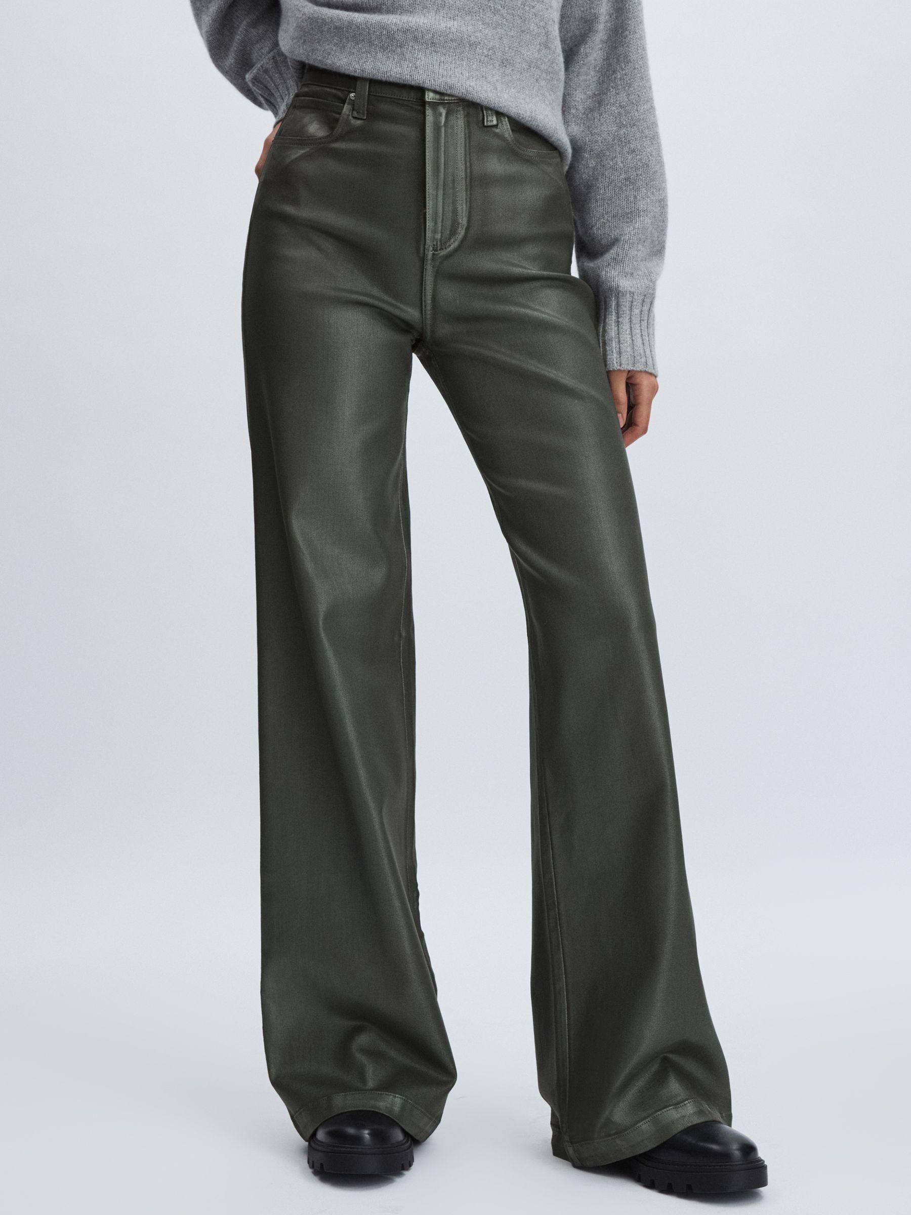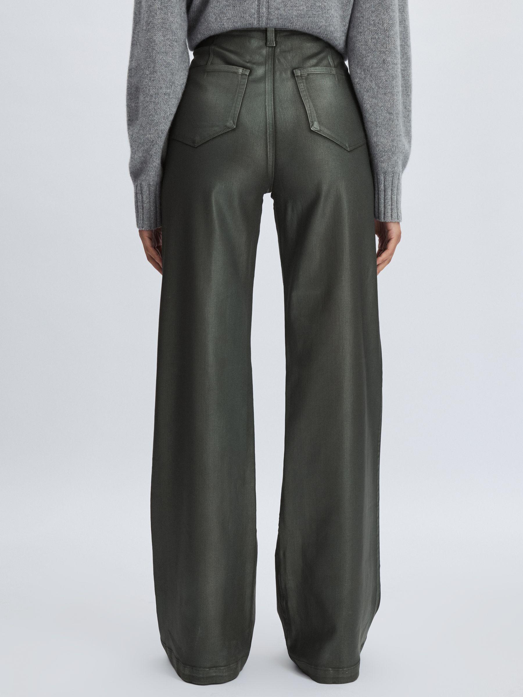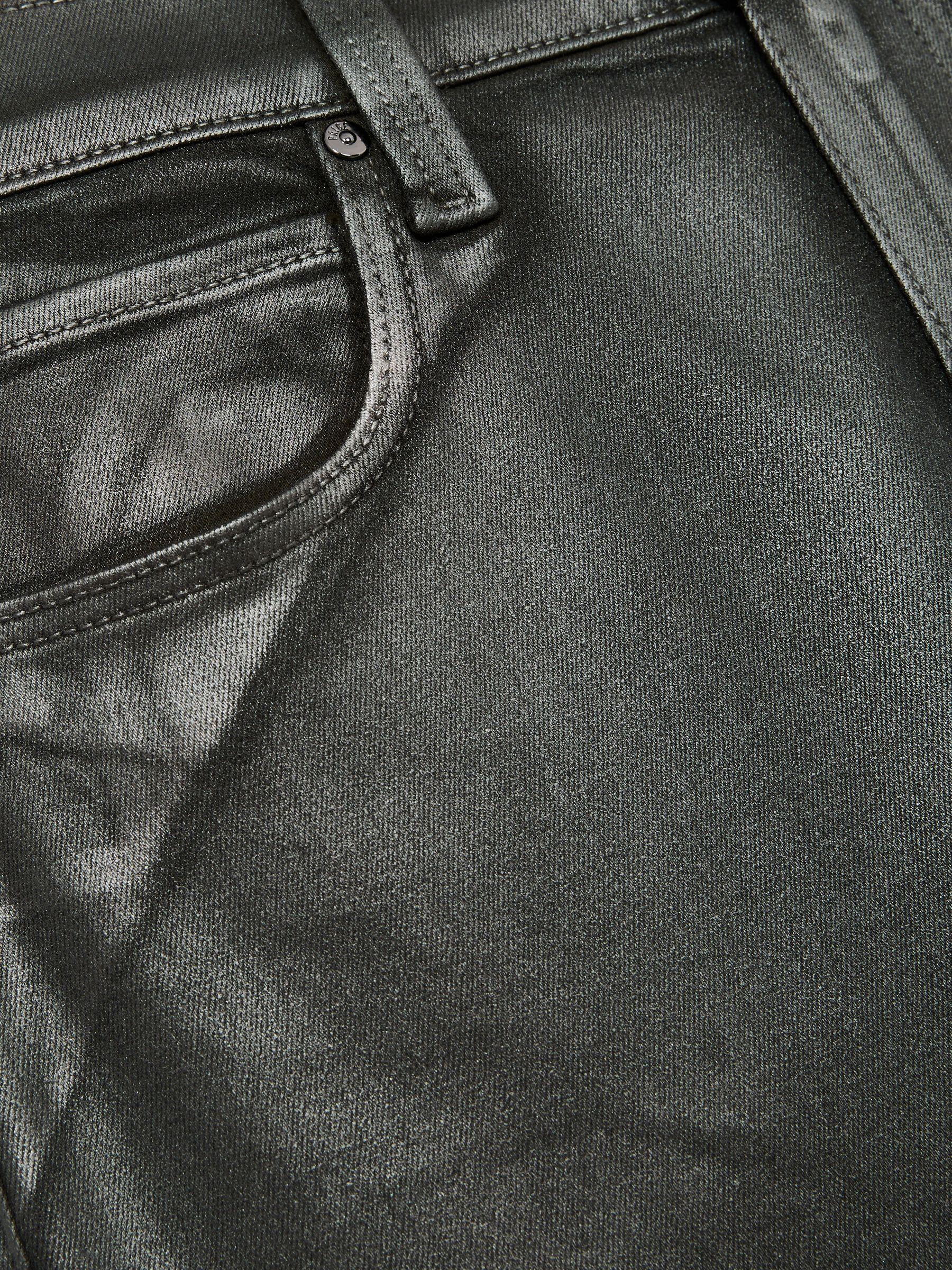 The Leenah jeans are cut from Paige’s coated Transcend denim with a holographic shimmer finish, accented by gunmetal-tone hardware. This wide-leg style is luxuriously soft with plenty of stretch and recovery to give it a fit that shines day and night. Leather-look with stretch. Shimmer finish. Wide leg. High rise. Five pockets. Front button and zip. Paige applies fabric technology, expert fit know-how and a Los Angeles style sensibility to create unique denim wear and lifestyle garments with enduring appeal.