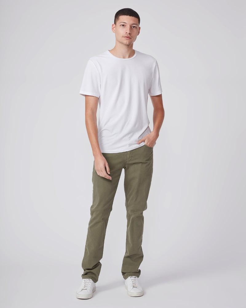 Take a break from your everyday denim and opt for this forest green twill pair that can easily be dressed up or down. This modern slim pant is expertly crafted from Eco Twill, a more sustainable take on traditional twill that contains a portion of recycled cotton which helps reduce the amount of textile waste in the industry. This mid-weight, matte sateen fabric has a brushed surface for the softest handfeel and contains slight stretch for all-day comfort and ease of movement.