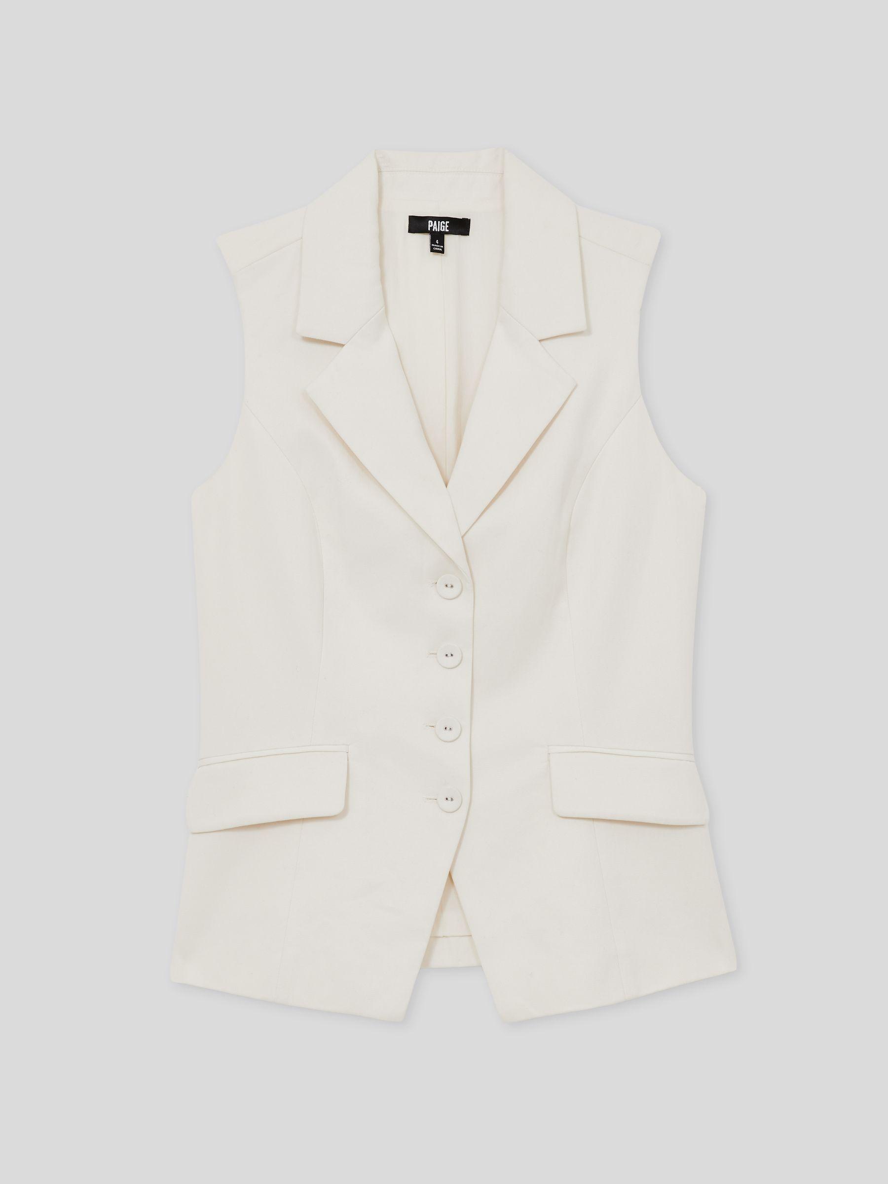 The Palomina waistcoat is crafted from soft lyocell-cotton twill, offering a smooth and luxurious hand-feel. Its tailored design is elevated with notch lapels and flap pockets, whilst the self-covered buttons add a refined touch. Lyocell-cotton twill, notch lapels, flap pockets, single vent to reverse, lined, self-covered front buttons. Paige applies fabric technology, expert fit know-how and a Los Angeles style sensibility to create unique denim wear and lifestyle garments with enduring appeal.