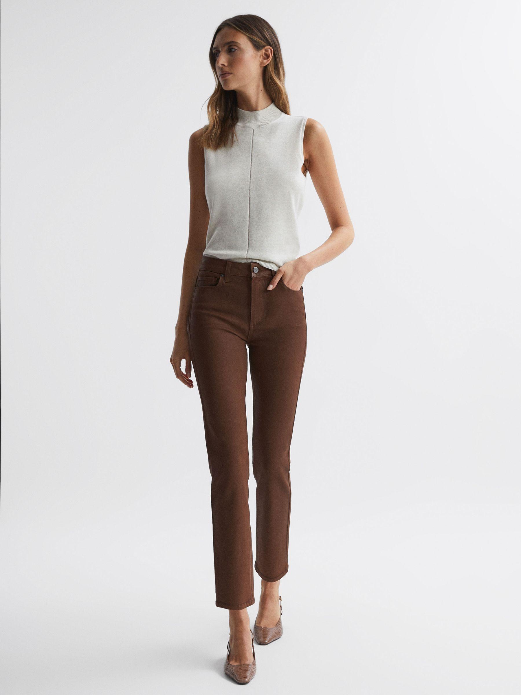 Paige applies fabric technology, expert fit know-how and a Los Angeles style sensibility to create unique jeans. Cindy is Paige's supermodel style, thanks to their flattering mid-rise shape which fits slim through the length to a cropped finish. Their unique cognac luxe shade suits a modern, neutral agenda. Cut from Paige's smooth, ultra-stretch denim, this style has a vintage appearance whilst remaining comfortable. Mid rise Zip-fly and button closure Five-pocket style Paige branding Cropped