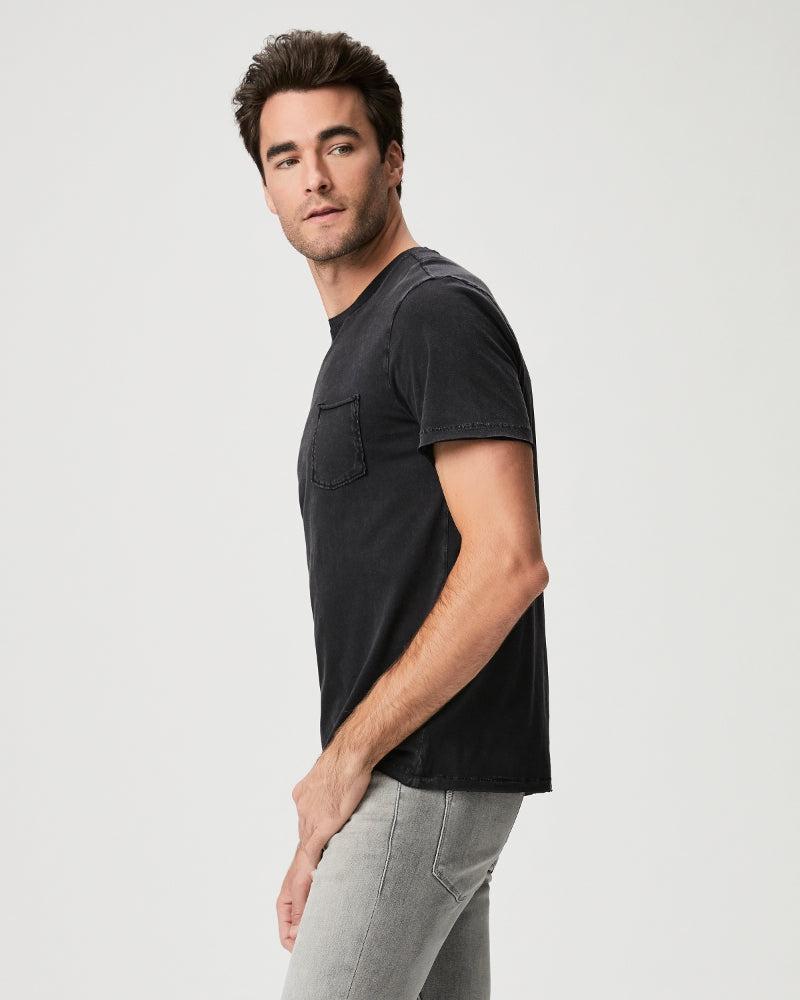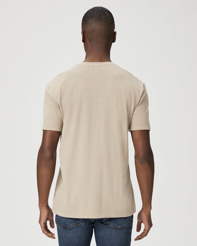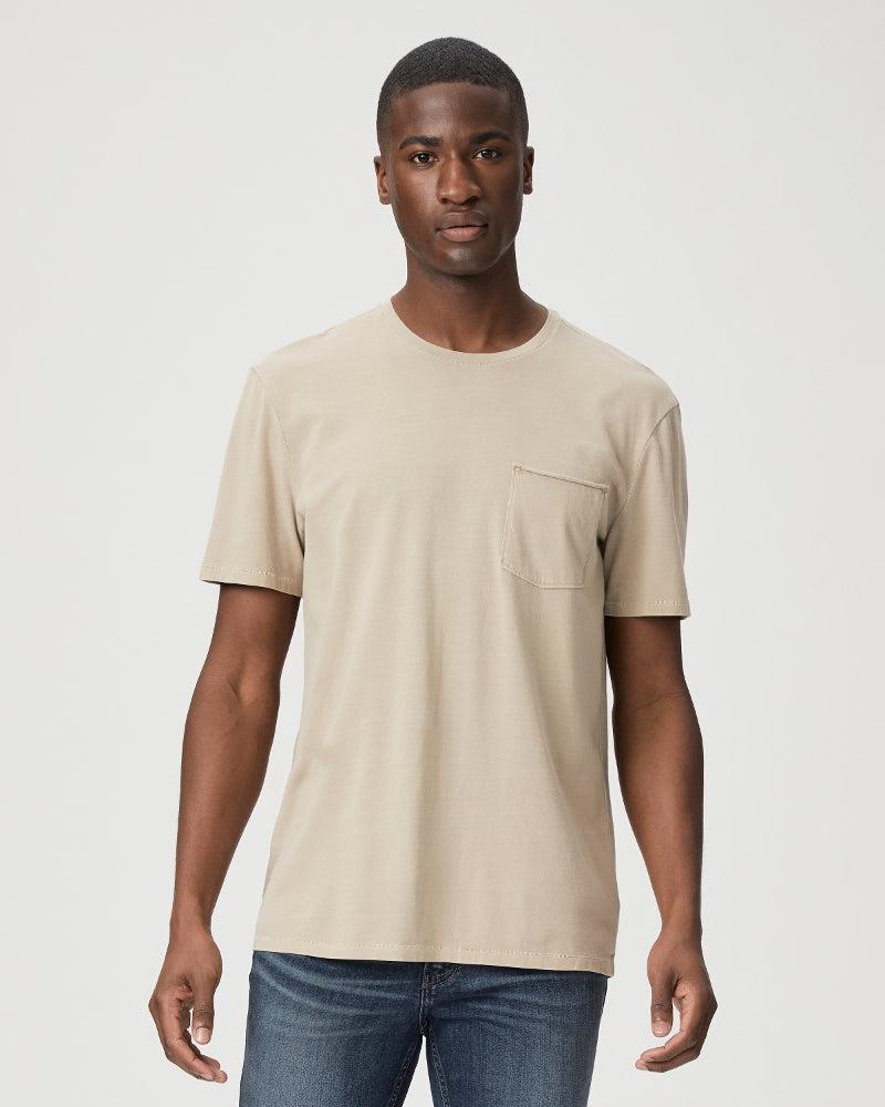 Product Details This crew neck tee, the Paige Ramirez Tee, is crafted from supremely soft 100% cotton with a subtle stretch and a vintage feel. It boasts a raw edge chest pocket, a slightly curved hem, and a center back seam detail. The Vintage Mocha Cream and Black color option has been pigment washed, resulting in a one-of-a-kind appearance with varying tones. Wear it solo or layer it under a jacket for a relaxed weekend look. 100% Cotton Model is 186cm/6'1" and is wearing a size M Imported SKU: M028J48-B483 SKU: M028J48-1106