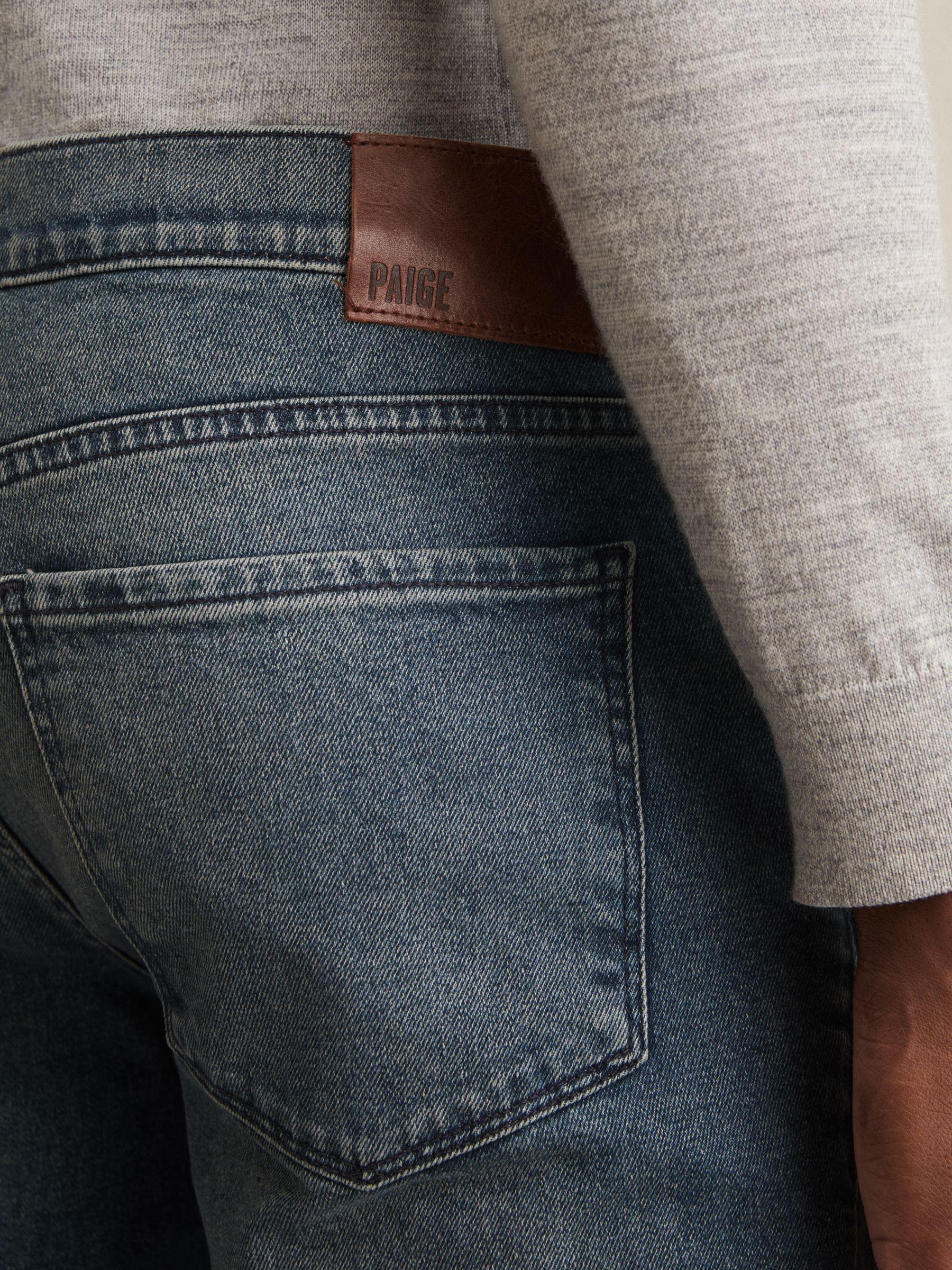 The Lennox jeans are Paige’s bestselling slim fit style, crafted from their Transcend denim. They offer exceptional comfort for everyday wear, featuring premium stretch and recovery for a perfect fit. Denim with stretch. Slim leg. Faded patches. Logo patch to reverse. Five pockets. Front button and zip. Paige applies fabric technology, expert fit know-how and a Los Angeles style sensibility to create unique jeans. This season, we’ve curated a selection of Paige styles that work best with Reiss looks.