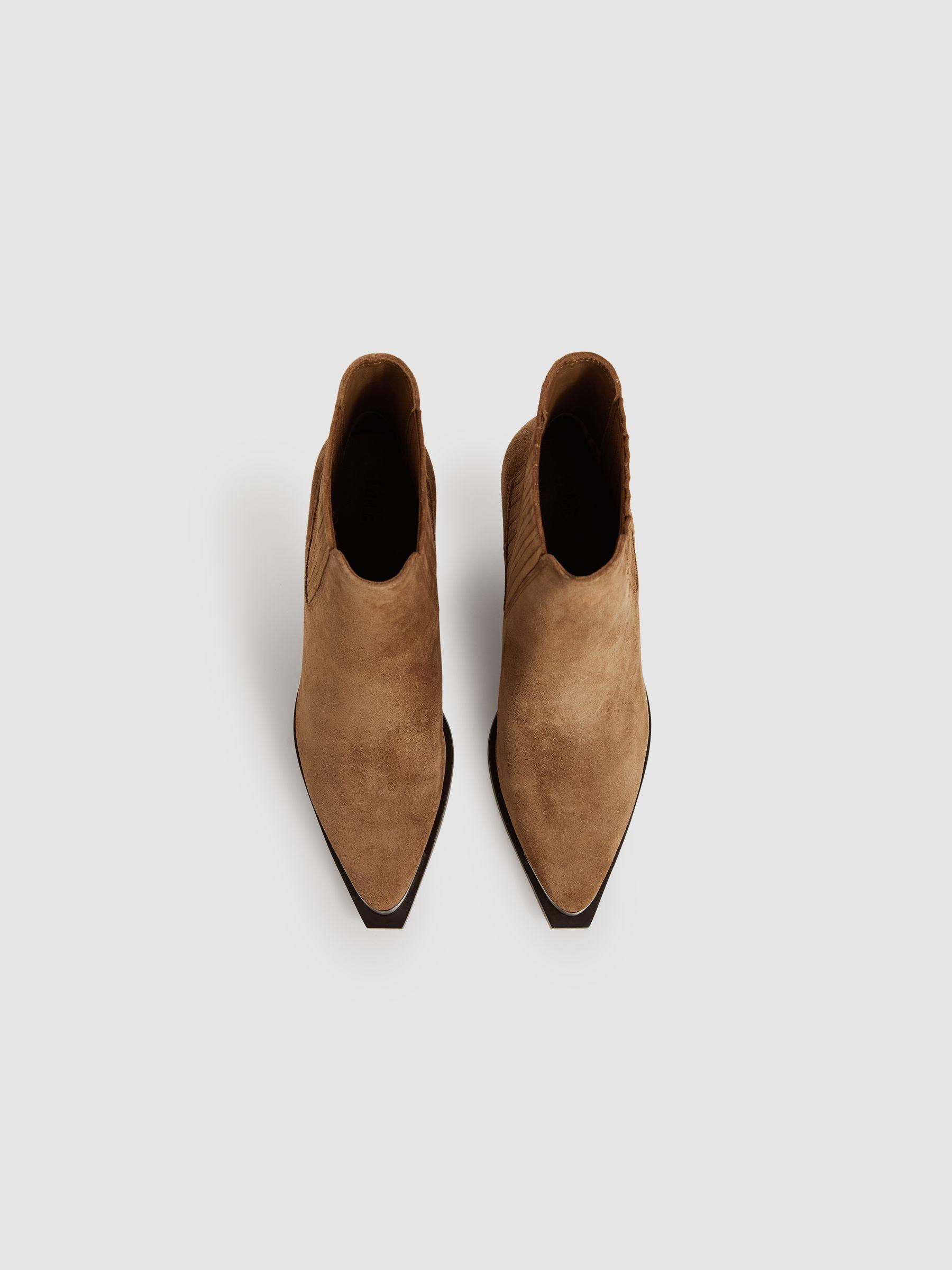 The Lyra is a soft, pointed-toe ankle boot crafted from soft suede. It’s designed with finger gore detail at the sides for easy wear, whilst a silver-tone metal rand at the toe adds a subtle edge. 100% suede Finger gore detail at the sides Silver-tone metal rand at the pointed toe Extended smooth leather welt Stacked block heel Paige applies fabric technology, expert fit know-how and a Los Angeles style sensibility to create unique denim wear and lifestyle garments with enduring appeal.