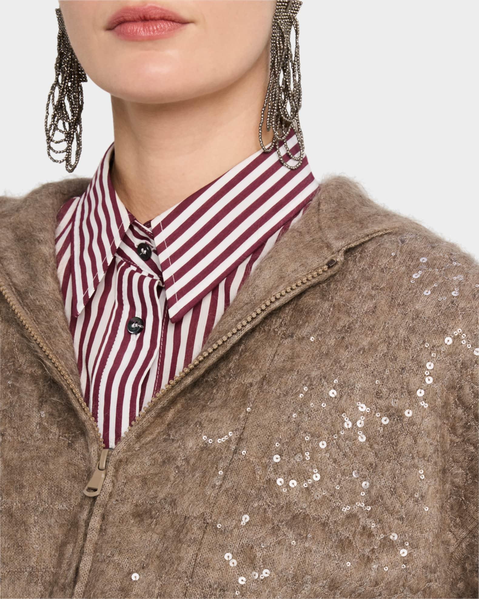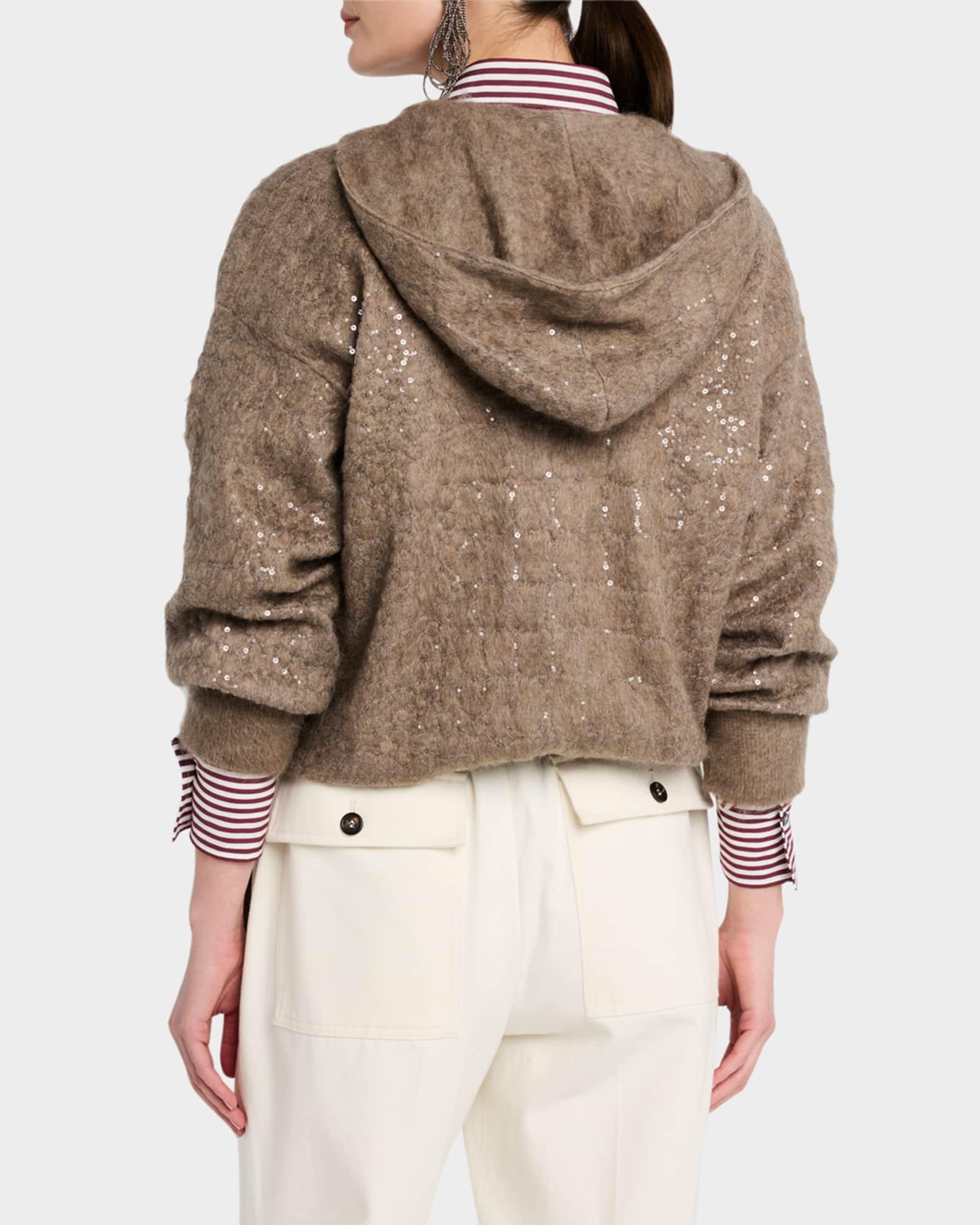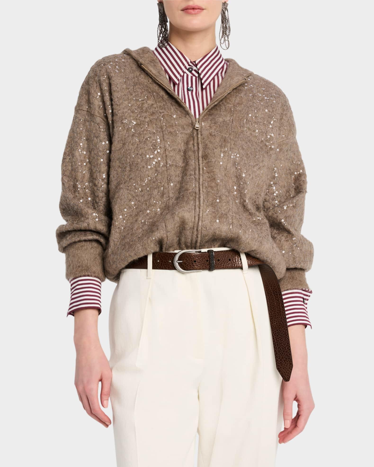 Pailette Crocco Mohair-Cashmere Zip Hoodie
