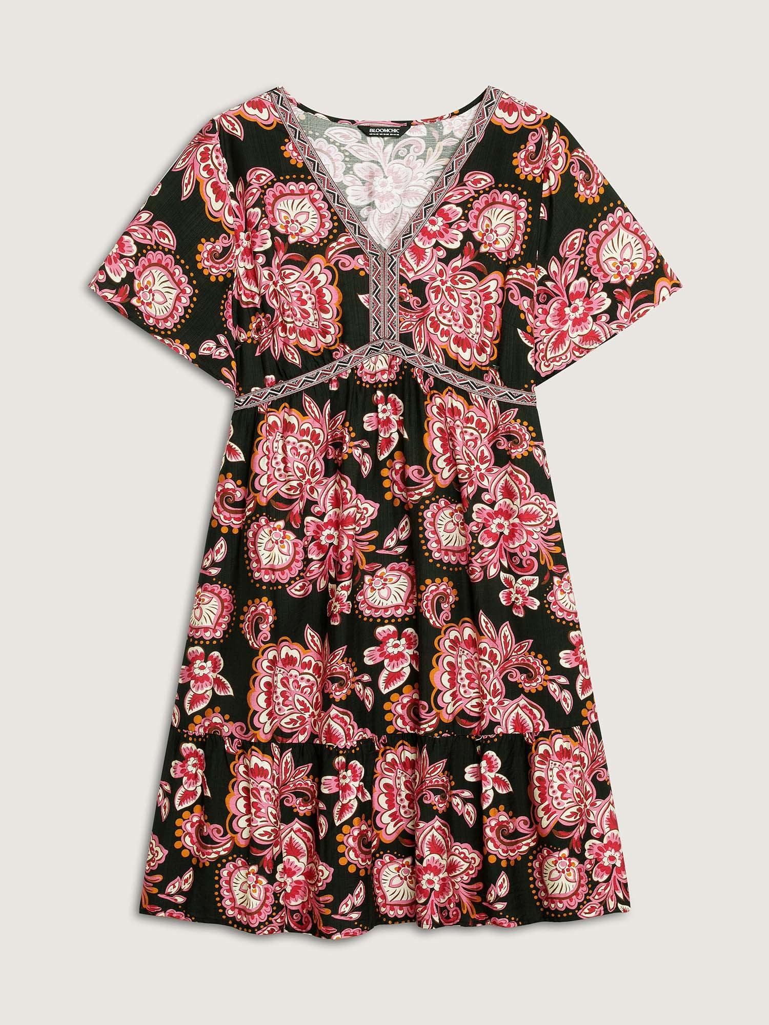 Paisley Print Stretchy Waist Pockets Midi Dress Female