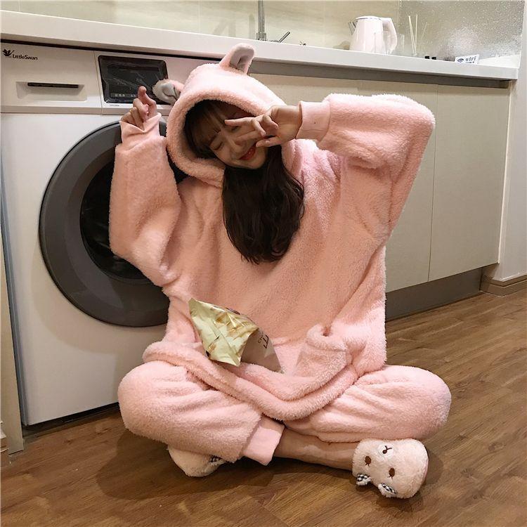 Buy Closette Pajama Set: Fluffy Bear Hoodie + Pants at YesStyle.com! Quality products at remarkable prices. FREE Worldwide Shipping available!