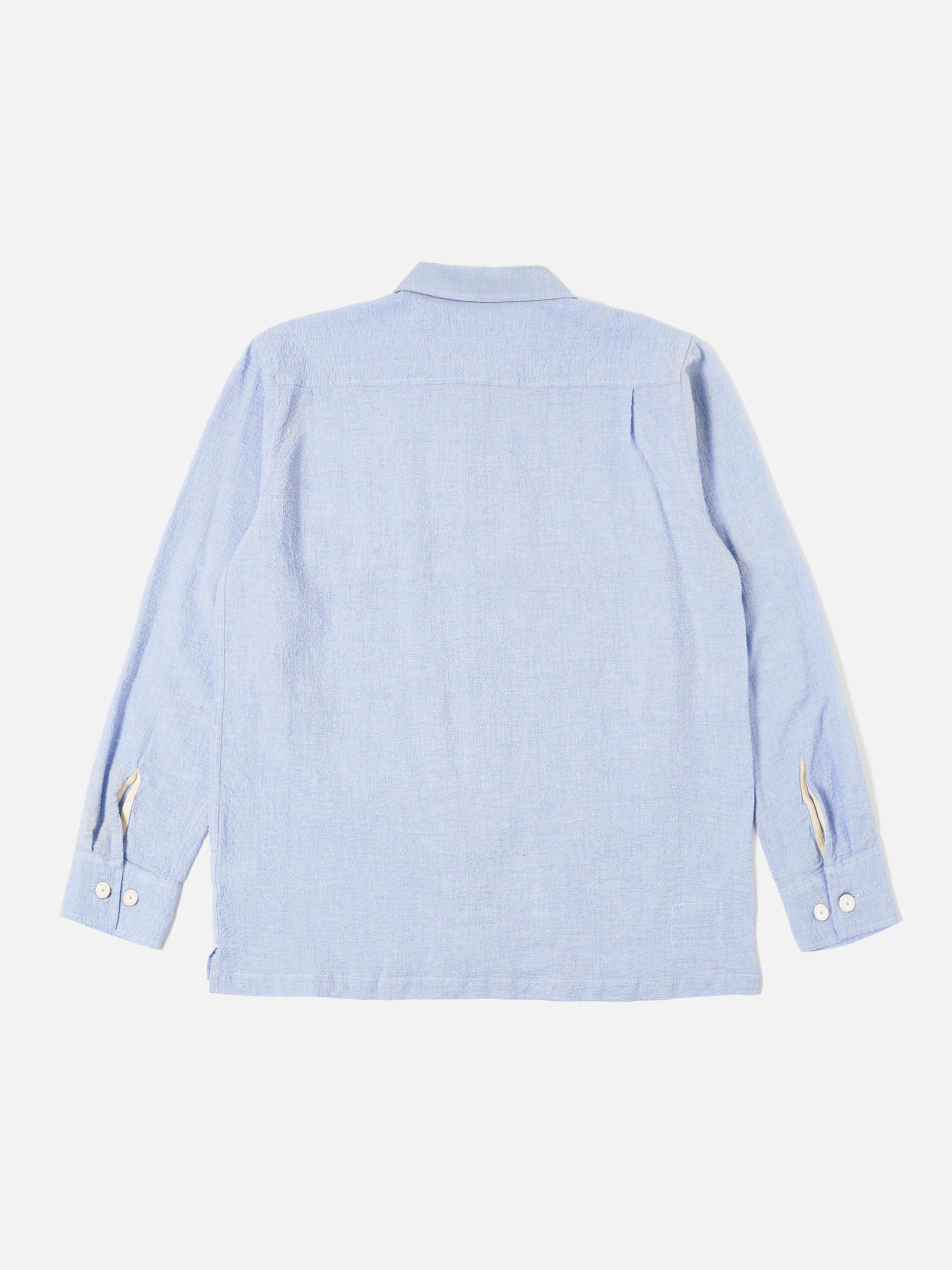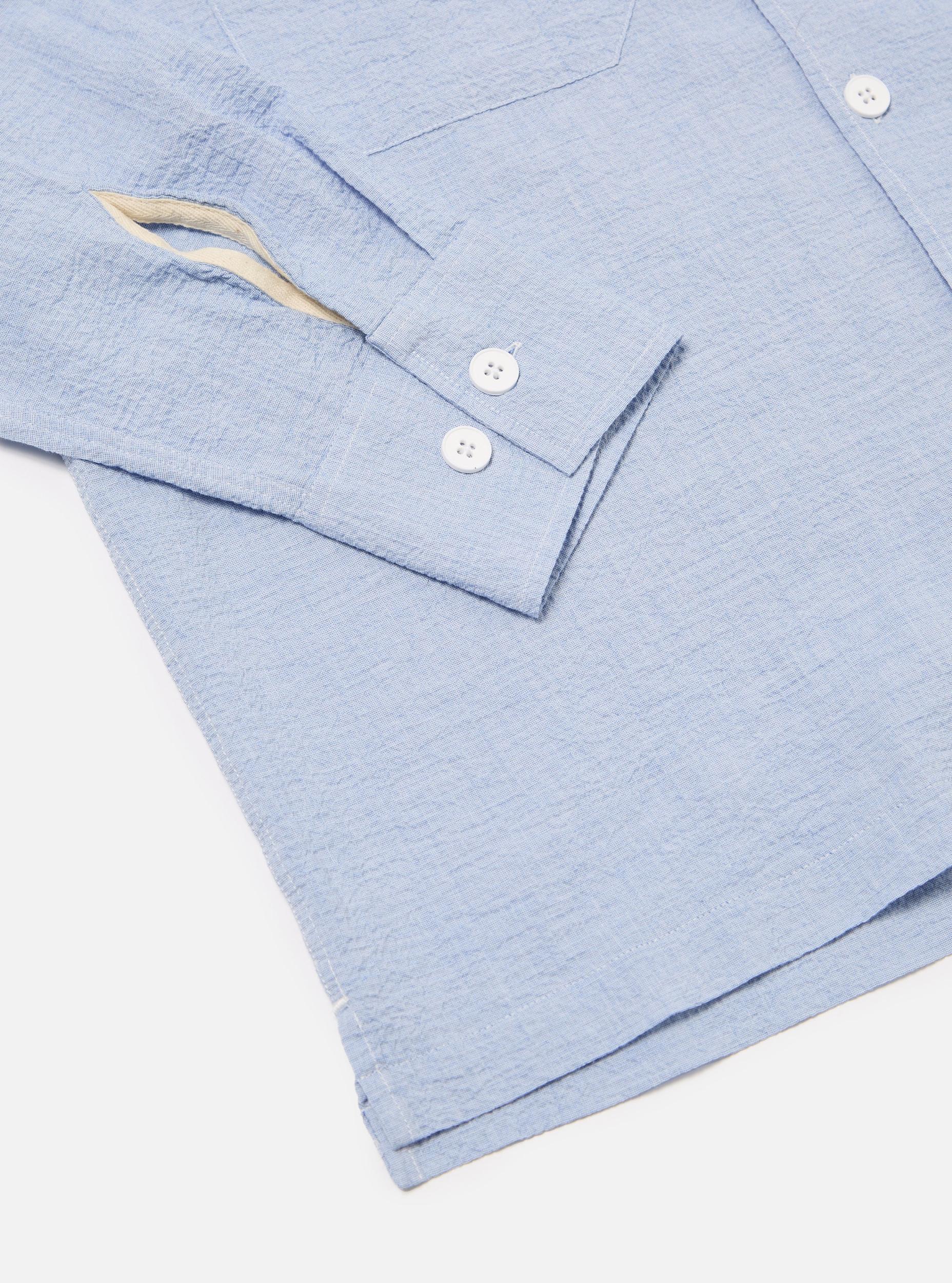 A loose fitting shirt with a flat collar, straight hem and button-flap chest pockets. It also has short split sides for a boxy loose fit, and two large pockets with button-closure flaps. Our model is 6' 0'' with a 38' Chest and is wearing a size ‘Large.’ An exceptionally lightweight seersucker. Perfect for summer thanks to its texture, which lifts the fabric away from your skin for a cooler feel. • Loose fit. • Two oversized, button-down chest pockets. • Straight cut hem. • Simple collar. • Fabric Content: 98% Cotton, 2% Elastane. • Washcare: Wash at 30 degrees. Do not bleach. Do not tumble dry. Cool iron. Do not dry clean. Wash like colours together. Do not iron decoration. • Please be aware that the measurements below are technical measurements that are based on the garment laid flat and are useful as a general guide only. Measured in Centimetres. XS S M L XL XXL XXXL Centre Back Length. 70.5 72.5 74.5 76.5 78.5 80.5 82.5 Chest Width - 2.5cm Below Armhole. 53.5 56 58.5 61 63.5 66 68.5 Sleeve Length - From Shoulder (inc. Cuff.) 60.5 62 63.5 65 66.5 68 69.5 Across Shoulders. 44 46 48 50 52 54 56