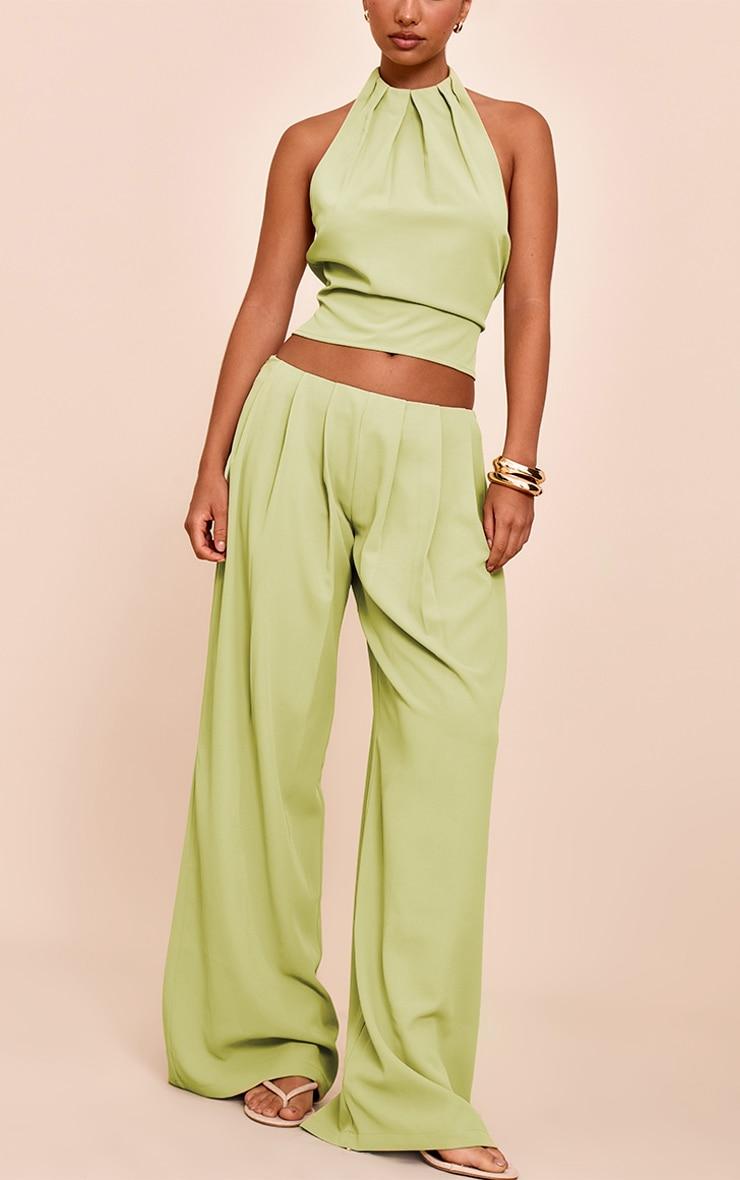 Command your aesthetic with ease in the pale lime woven pleated low rise wide leg pant. The low-rise waist and sharp pleats create a flattering, expansive wide-leg silhouette, delivering a refined line that grounds any look. Pair these pants with the coordinating pale lime halter top for a seamless ensemble, or style with a crisp white cami and heeled sandals for a polished statement at your next event.Length approx 76cm/30inch (Based on sample size US 4)Model wears size UK 8/ EU 36/ AUS 8/ US 4Model Height - 5ft 7inchp]:!mb-4inch>Brand: PrettyLittleThingCategory: Co-ordsProduct type: Wide LegColor: Pale LimeMaterial: Tailored WovenDesign: PlainOccasion: Occasion