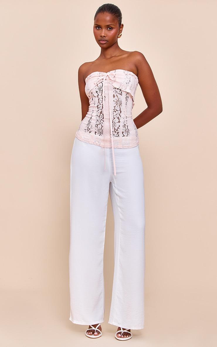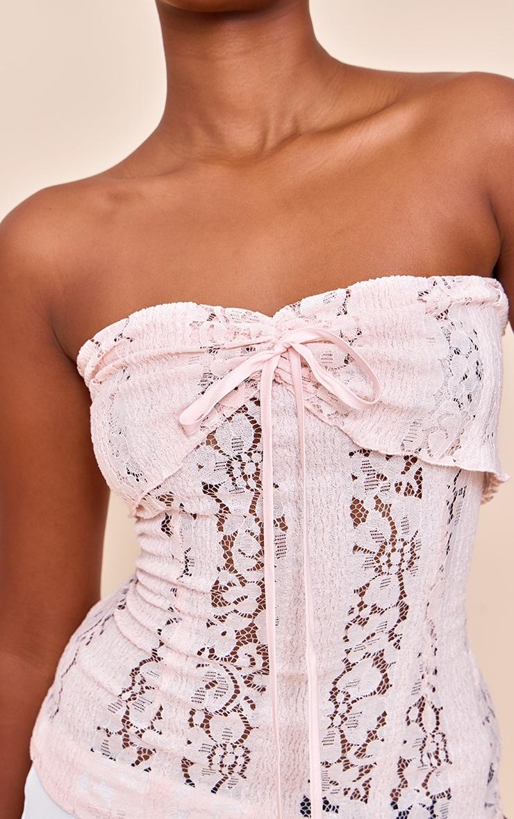 Feel your best in this pale pink fitted lace bandeau longline top. Tailored from soft pink lace, this top has a bandeau neckline, subtle tie detailing at the bust and a hip length fit. Team it with white pants and neutral heels for an ethereal look.Length approx 34.5cm/13.5inch (Based on sample size US 4)Model wears size UK 8/ EU 36/ AUS 8/ US 4Model Height - 5ft 9inchp]:!mb-4inch>Brand: PrettyLittleThingCategory: TopsProduct type: Cami TopColor: Pale PinkMaterial: Tailored WovenDesign: PlainOccasion: Day