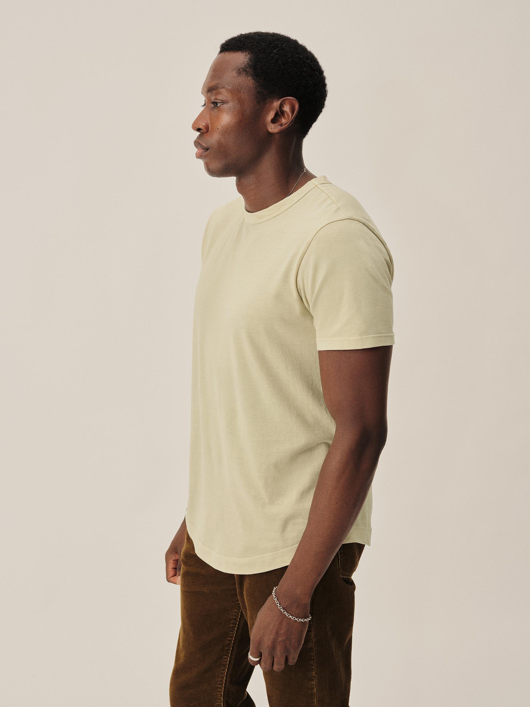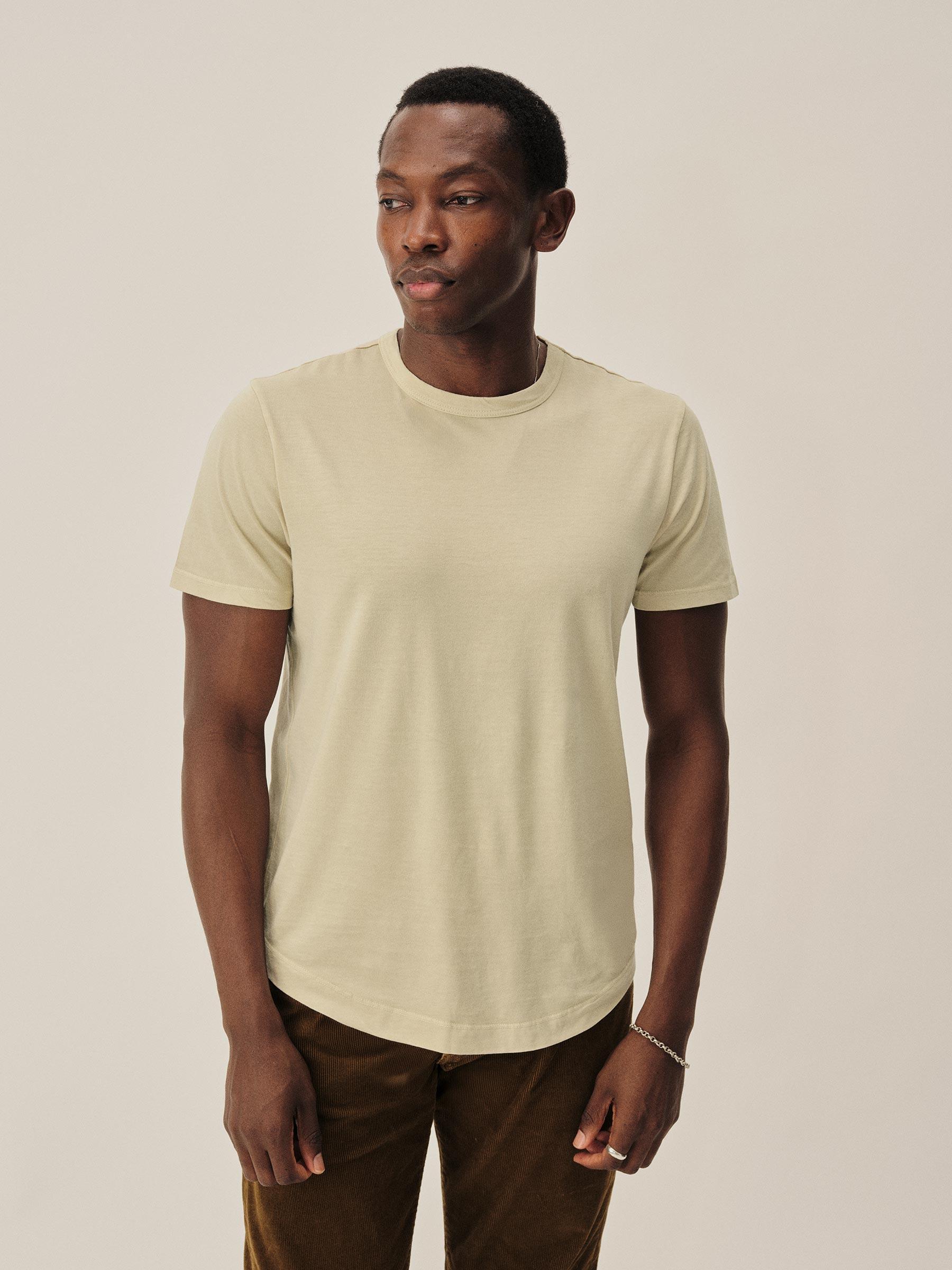 Pale Sand Pima Curved Hem Tee - Our signature curved hem tee in premium, long-staple USA-grown Supima cotton. Made at BM Knitting Mills in Mohnton, PA.