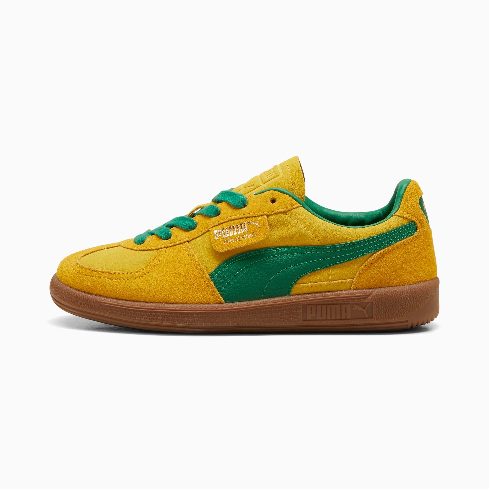 A terrace legend from our archives returns: The Palermo. The silhouette debuted back in the early '80s, where it quickly became a staple among the terrace crowds in British soccer stadiums. Now, we’ve brought it back for the fans. Like the original, the Palermo is complete with its signature tag at the upper, a T-toe construction, and, of course, the classic gum sole. This version has a suede base and leather Formstrip with foil-printed PUMA branding.PUMA’s leather products support responsible manufacturing via the Leather Working Group.www.leatherworkinggroup.comLeather upper with suede baseSuede tongue and debossed PUMA branded label and mesh backingSynthetic liningSynthetic socklinerRubber midsoleRubber outsole