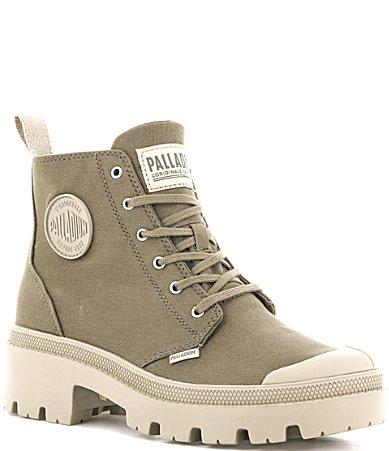 The Palladium Pallabase Twill boot brings their iconic Pampa to a higher level. A feminine boot with a higher heel and Palladium DNA, including the iconic rubber toecap. Made of cotton twill with a lace-up design and side zip closure. Breathable cotton lining. Die cut EVA + EVA cup footbed for optimal comfort. Durable rubber toe cap and outsole. Imported. Measurements: Weight: 1 lb 1 oz Shaft: 3 in Product measurements were taken using size 7, width M. Please note that measurements may vary by size.
