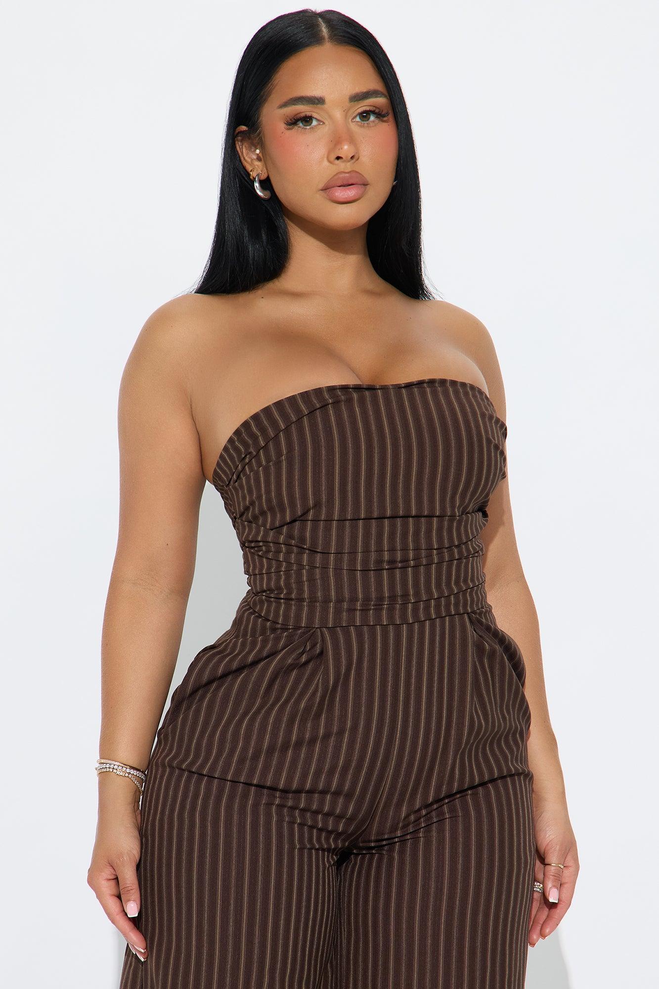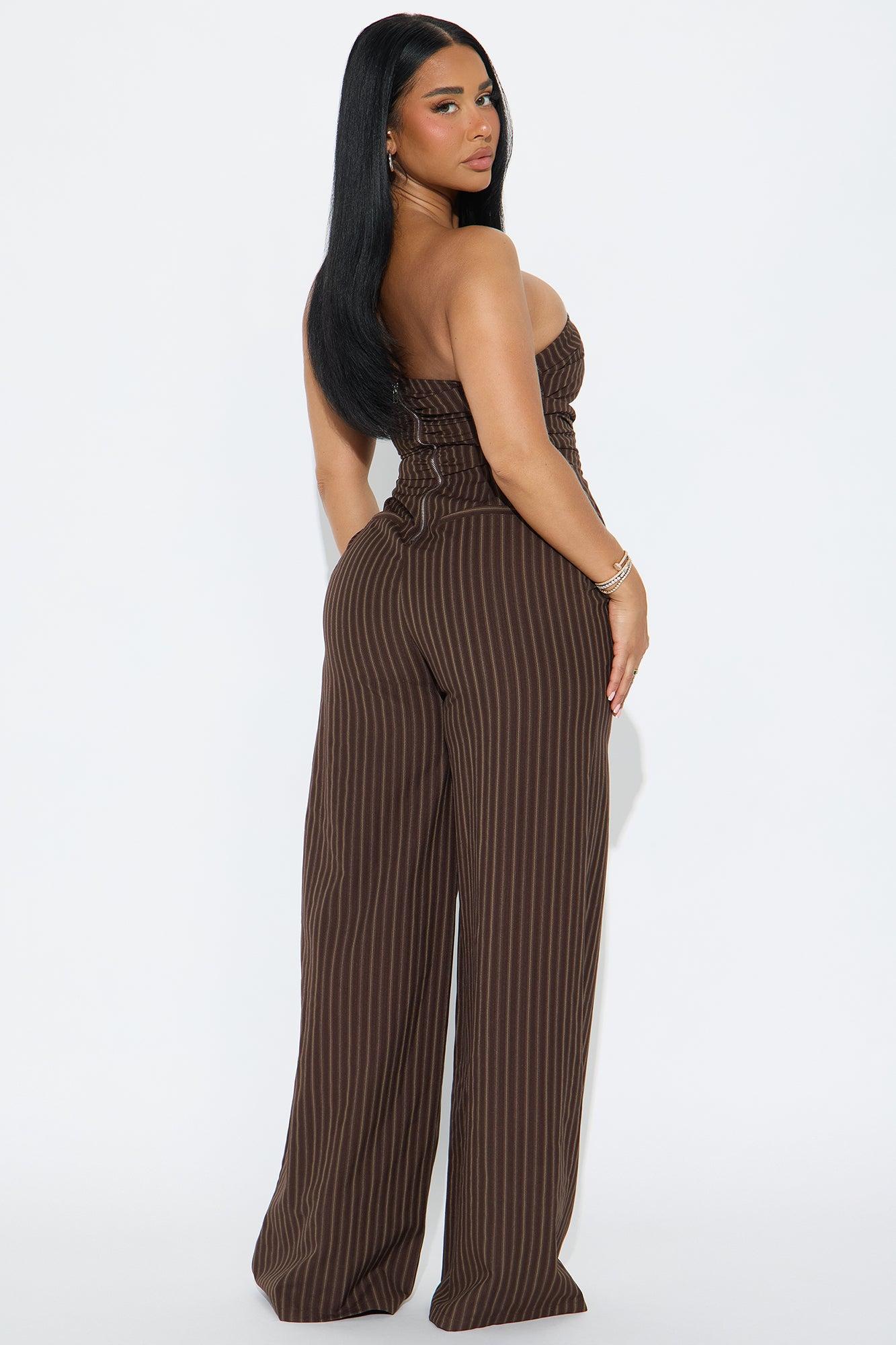 Palm Of My Hand Pinstripe Jumpsuit - Brown/combo