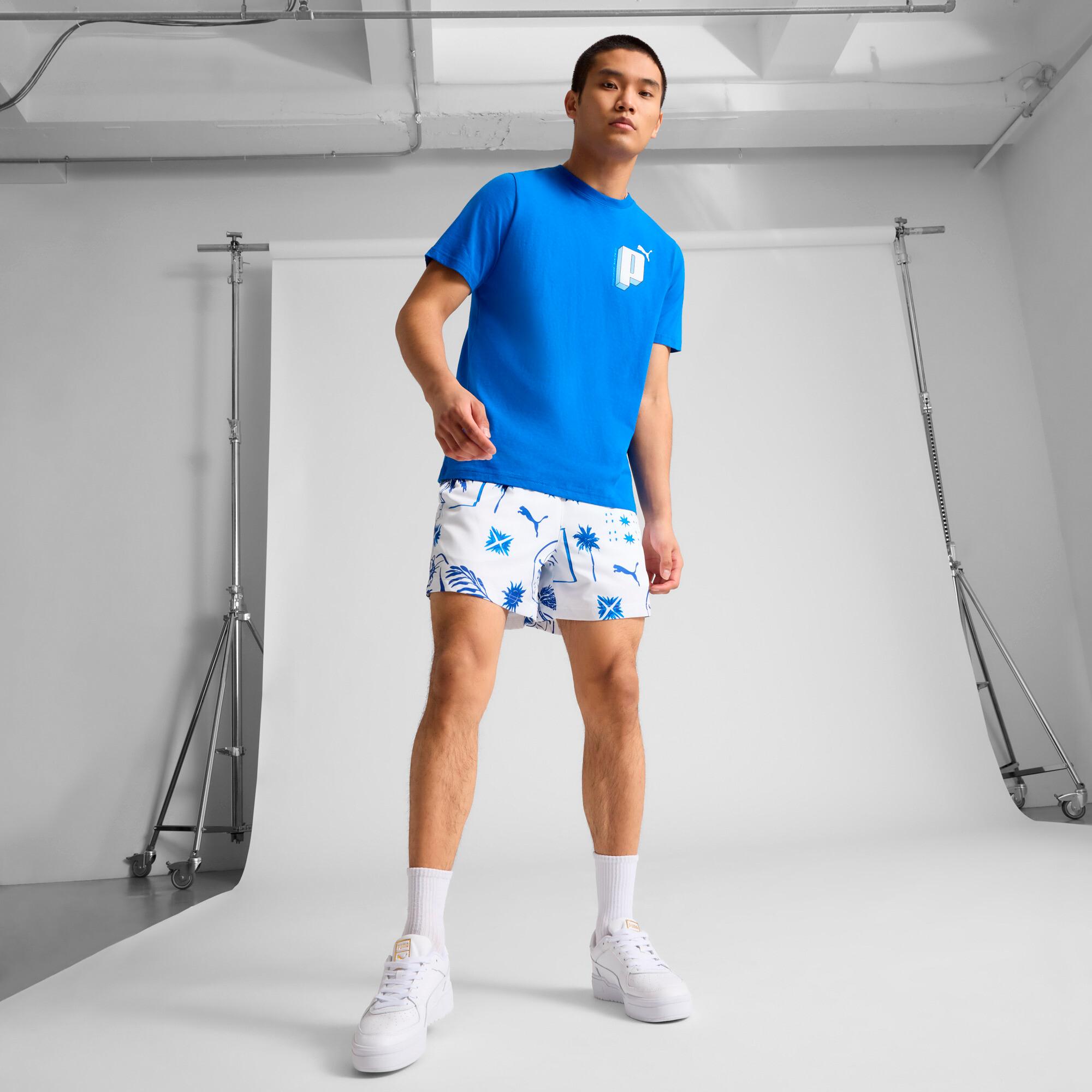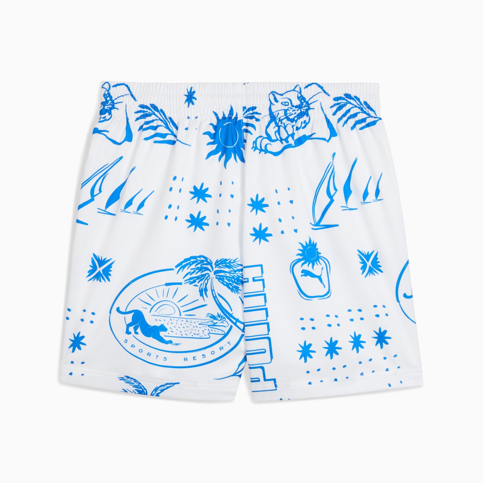 Get ready for fun in the sun with the Palm Resort shorts! Featuring an all-over summer print, embroidered PUMA logo details, and side pockets for safe storage. The elasticated waistband with external drawcords keeps it comfortable on hot days.