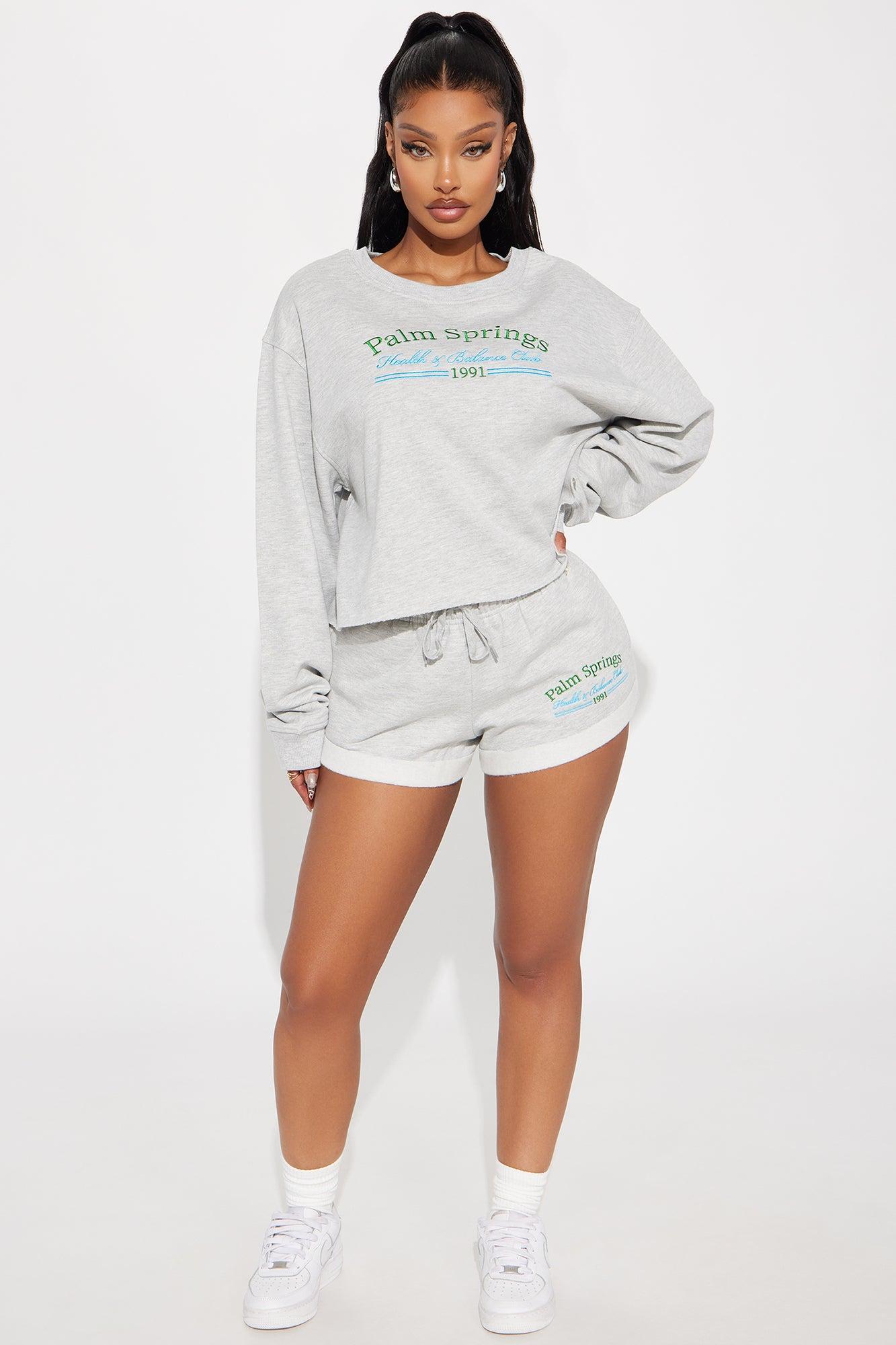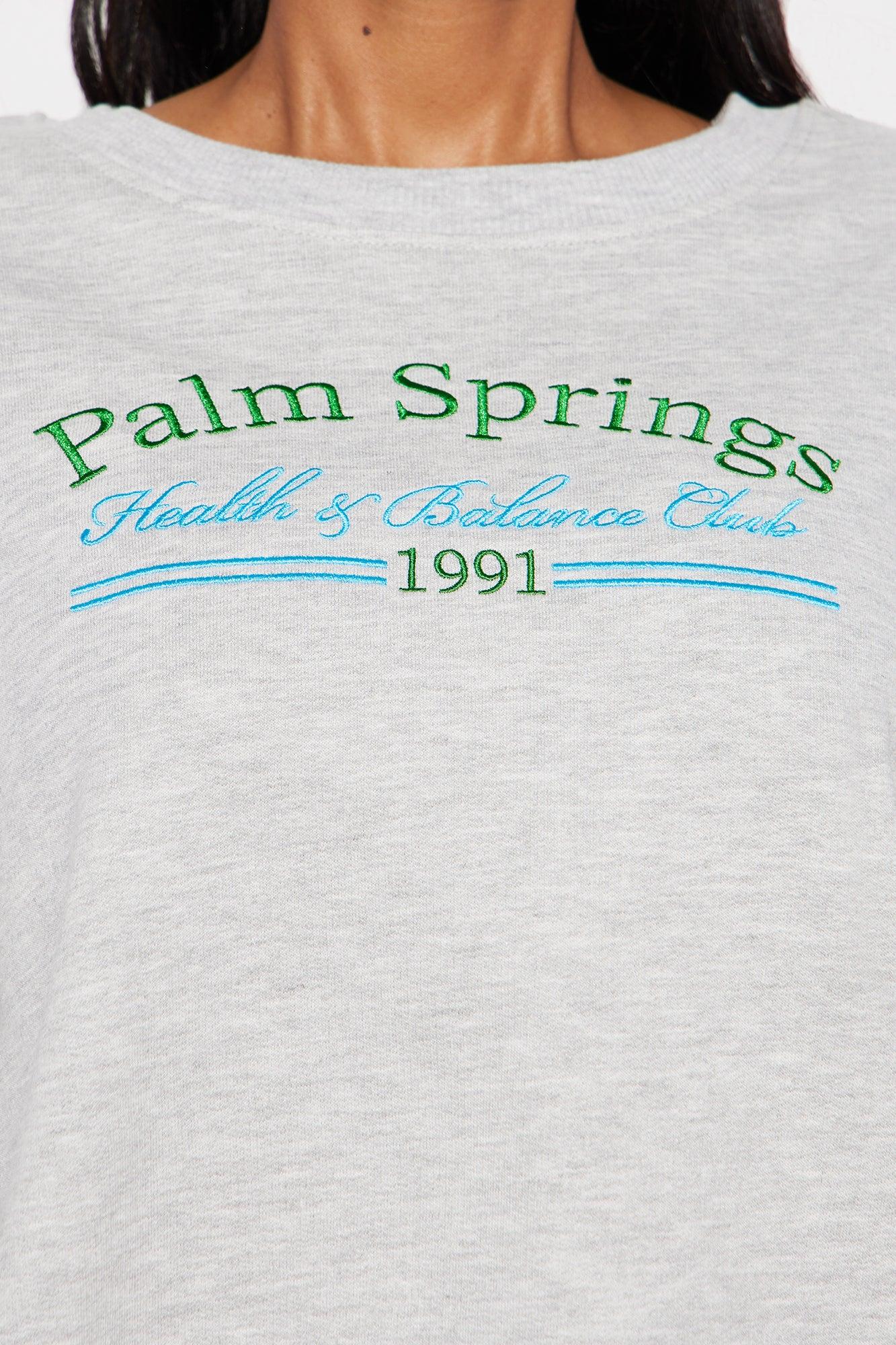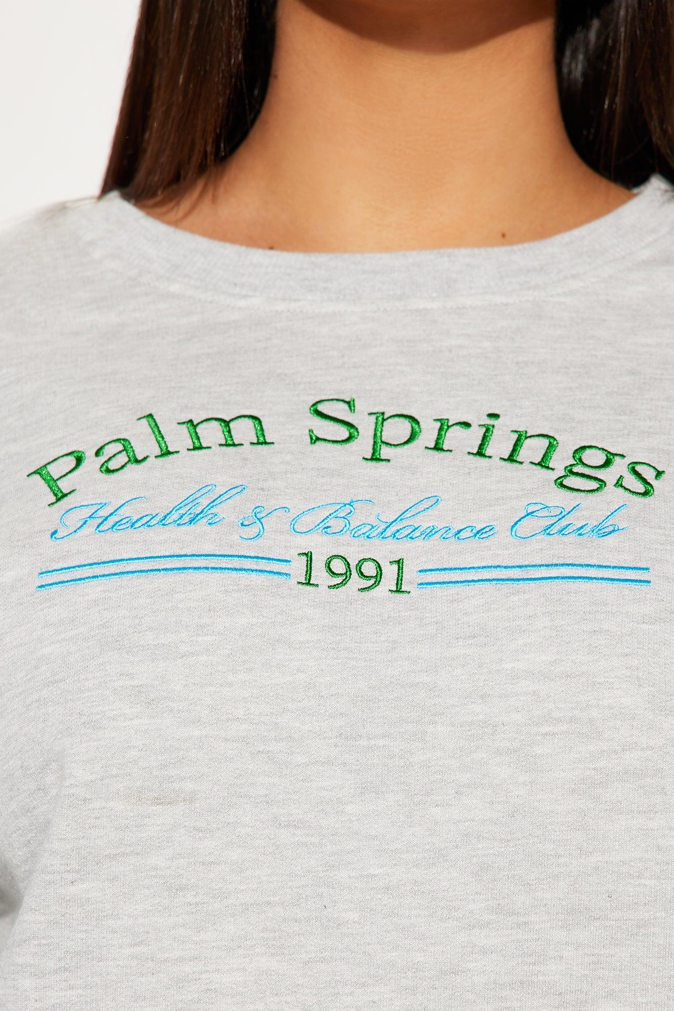 Available In Heather Grey. Embroidered "Palm Springs Health Club" Verbiage Cropped Raw Hem Long Sleeve Crew Neck Paid Back To "Palm Springs Health Club Shorts" Disclaimer: Due To The Print & Embroidery Placement , Each Garment Is Unique. 60% Cotton 40% Polyester Imported