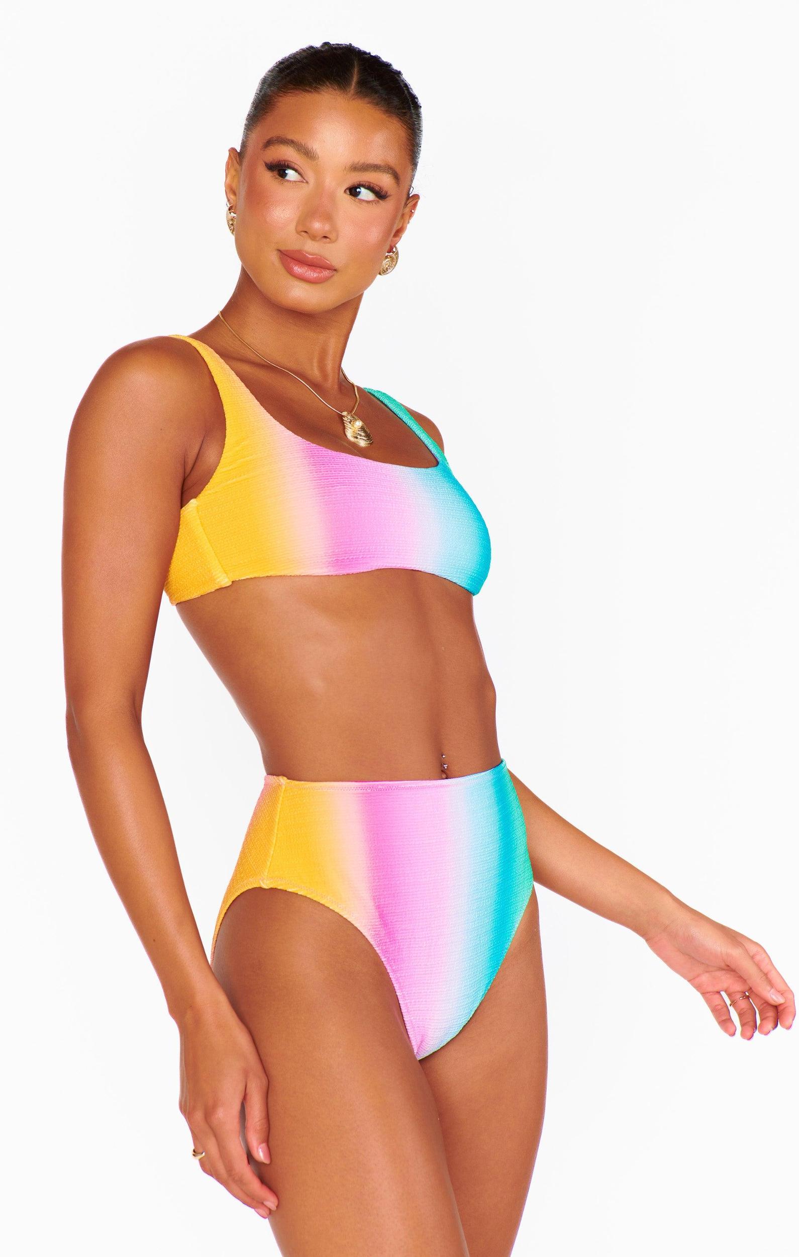 Hands down the cutest bikini for your next vacay! This high cut bikini bottom is super flattering with its bright ombre print. Beach ready paired with the Sanibel Top in Ombre Contour Scrunch.