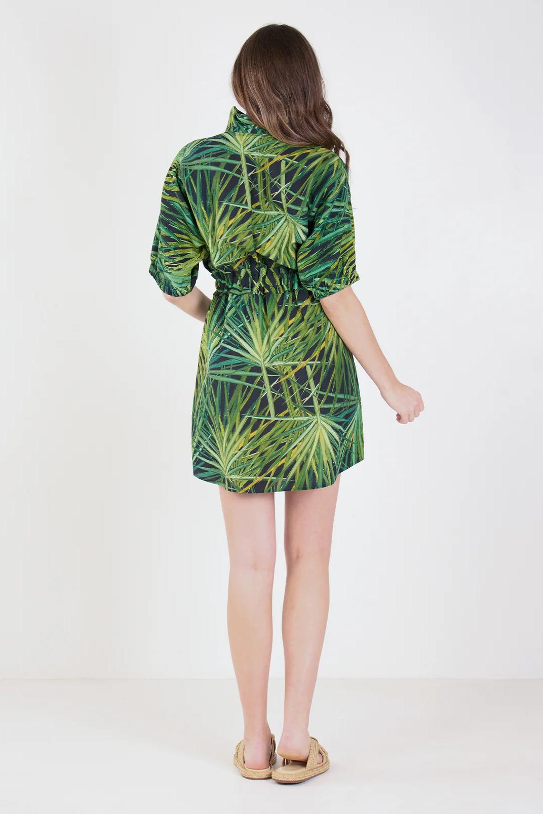 Inspired by the lush landscapes of the Lowcountry, the Palmer Dress in Bellamy Palm brings art and nature together in one wearable canvas. Designed with a classic stand collar, loose elastic dolman sleeves, and a cinched elastic waistband, this silhouette is effortlessly flattering and endlessly versatile. Side pockets add a touch of function to the form, while the vibrant palm print, hand-painted by Savannah artist, Bellamy, infuses every inch with expressive detail and depth. Dress it up with a heel, or down with a sneaker!