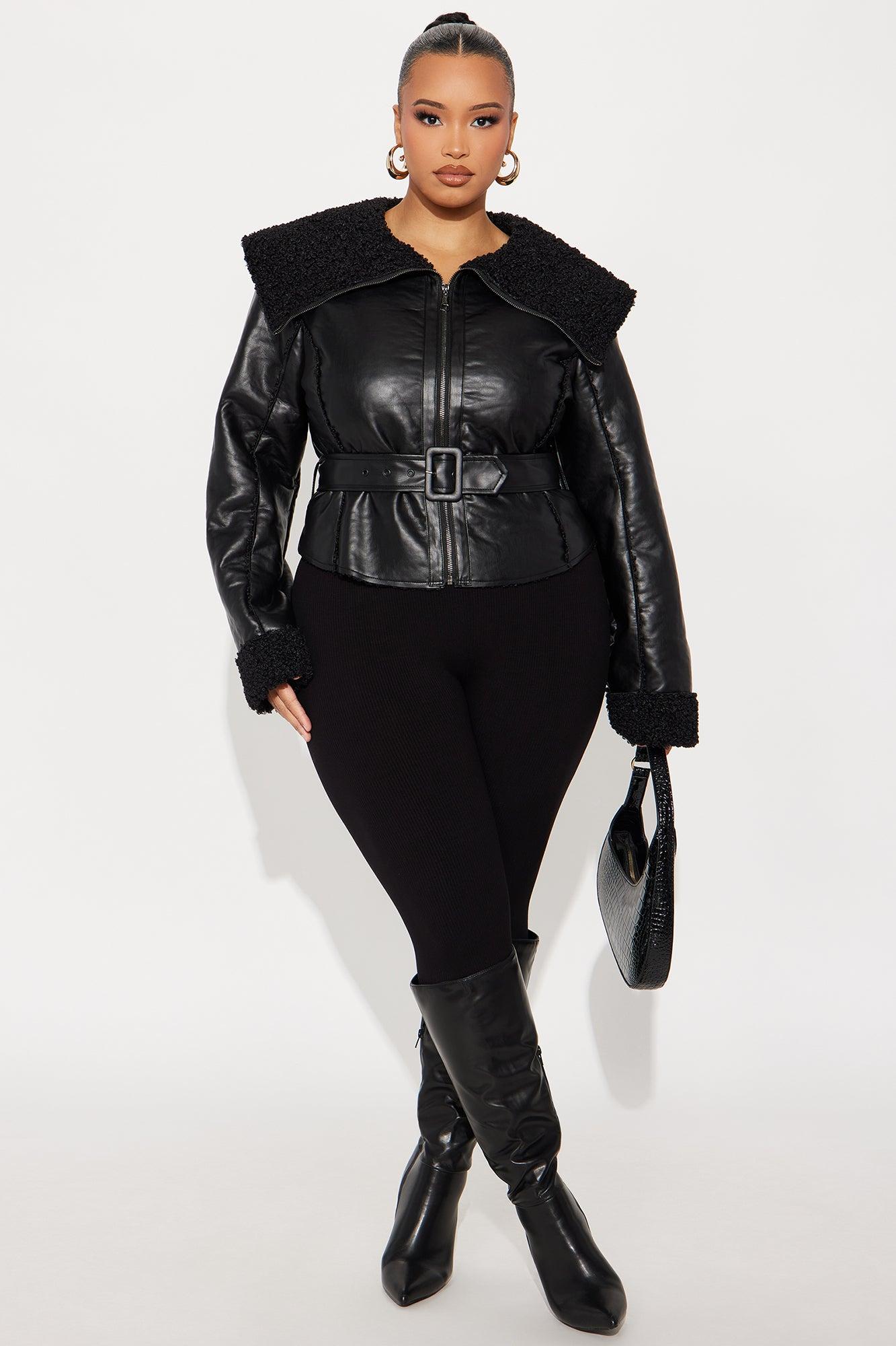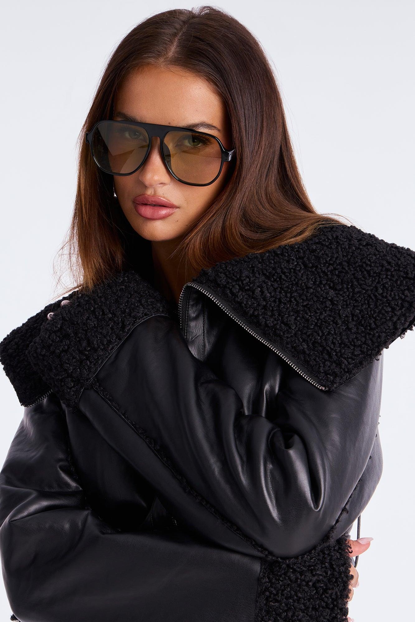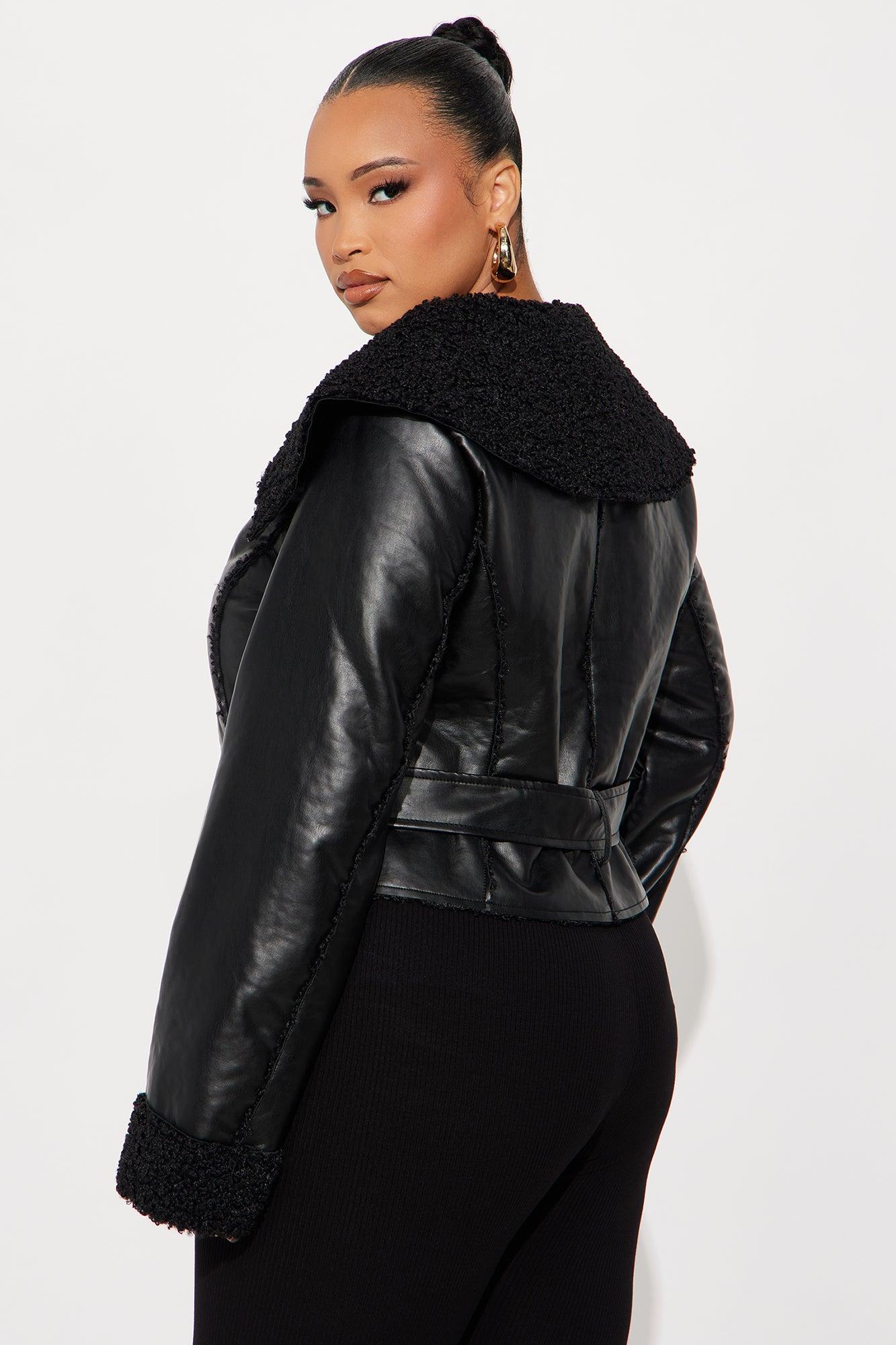 Paloma Faux Leather Sherpa Lined Coat - Black Female